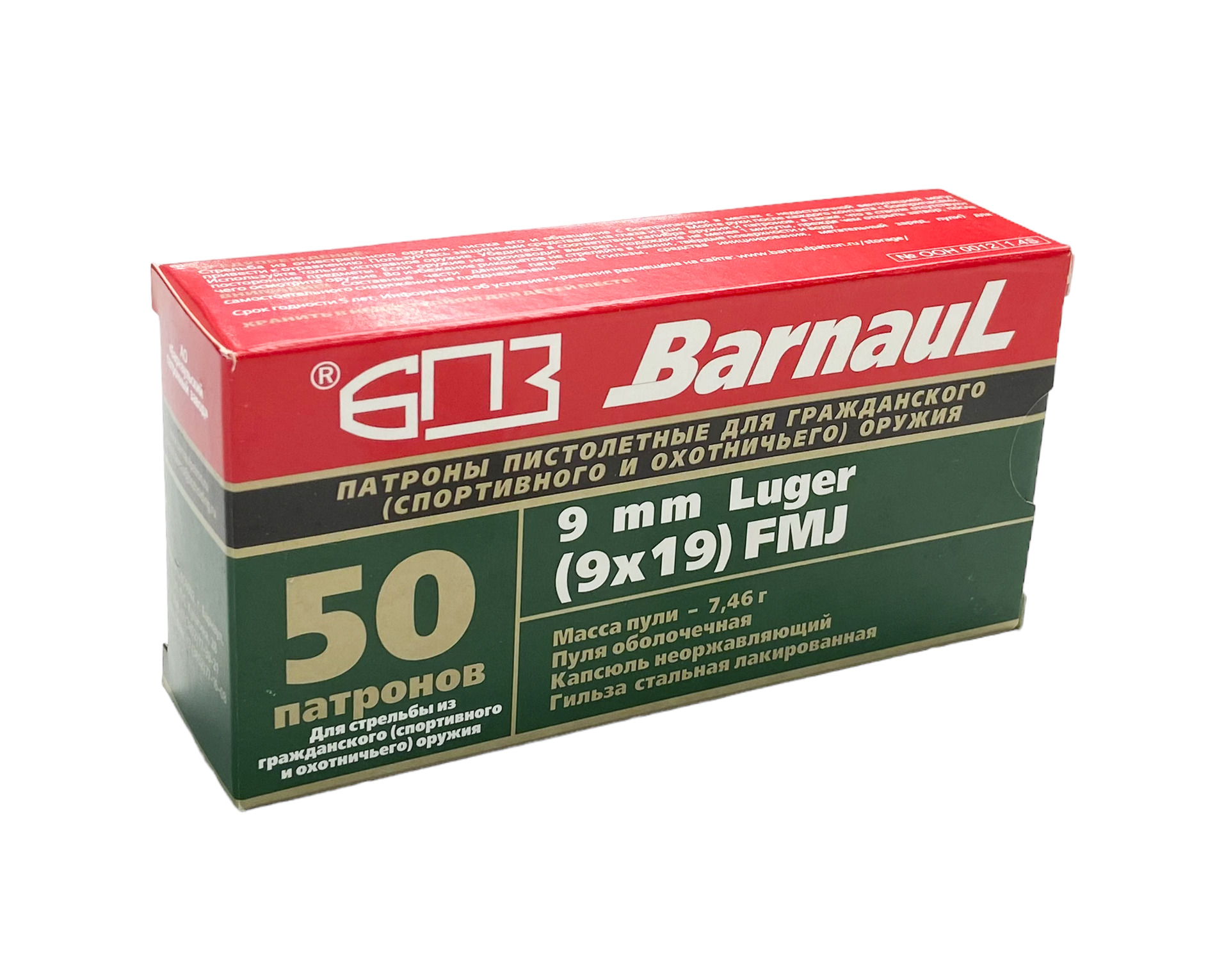 Патрон 9х19Luger БПЗ FMJ лак.