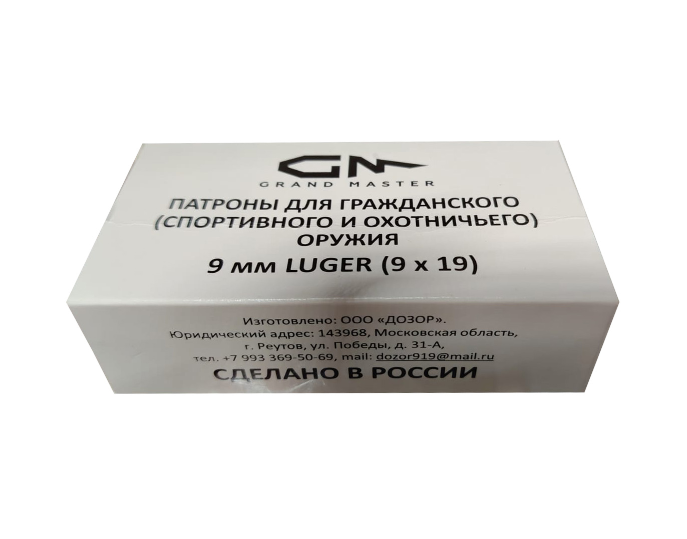 Патрон GRAND MASTER Дозор калибр 9×19 Luger – надежный боеприпас для практической стрельбы и тренировок.