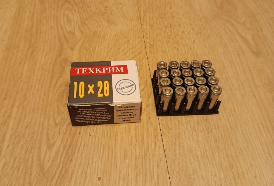 В травматическом боеприпасе калибр измеряется как по диаметру шарика (например, 10x22Т), так и по диаметру гильзы (9 РА). В зависимости от длины гильзы изменяются характеристики и назначение патрона. Обозначение калибра 10x22Т будет расшифровано как - калибр 10 мм, с длиной гильзы 23 мм, буква Т обозначает травматический. Обозначение 9 РА – расшифровывается как – калибр 9 мм, РА (Pistole Ammunition). Подробнее | 10x28 T | ||
