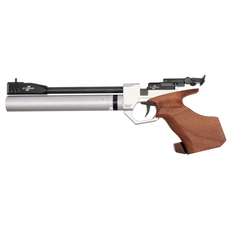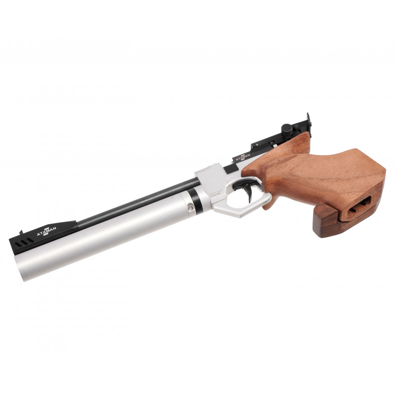 Эргономичный дизайн и материалы Модель выполнена в серебристом цвете с декоративными элементами из натурального бука. Такая комбинация не только придает пистолету эстетическую привлекательность, но и повышает комфорт при стрельбе. Деревянная рукоять обеспечивает надежный хват и предотвращает скольжение даже при длительном использовании.