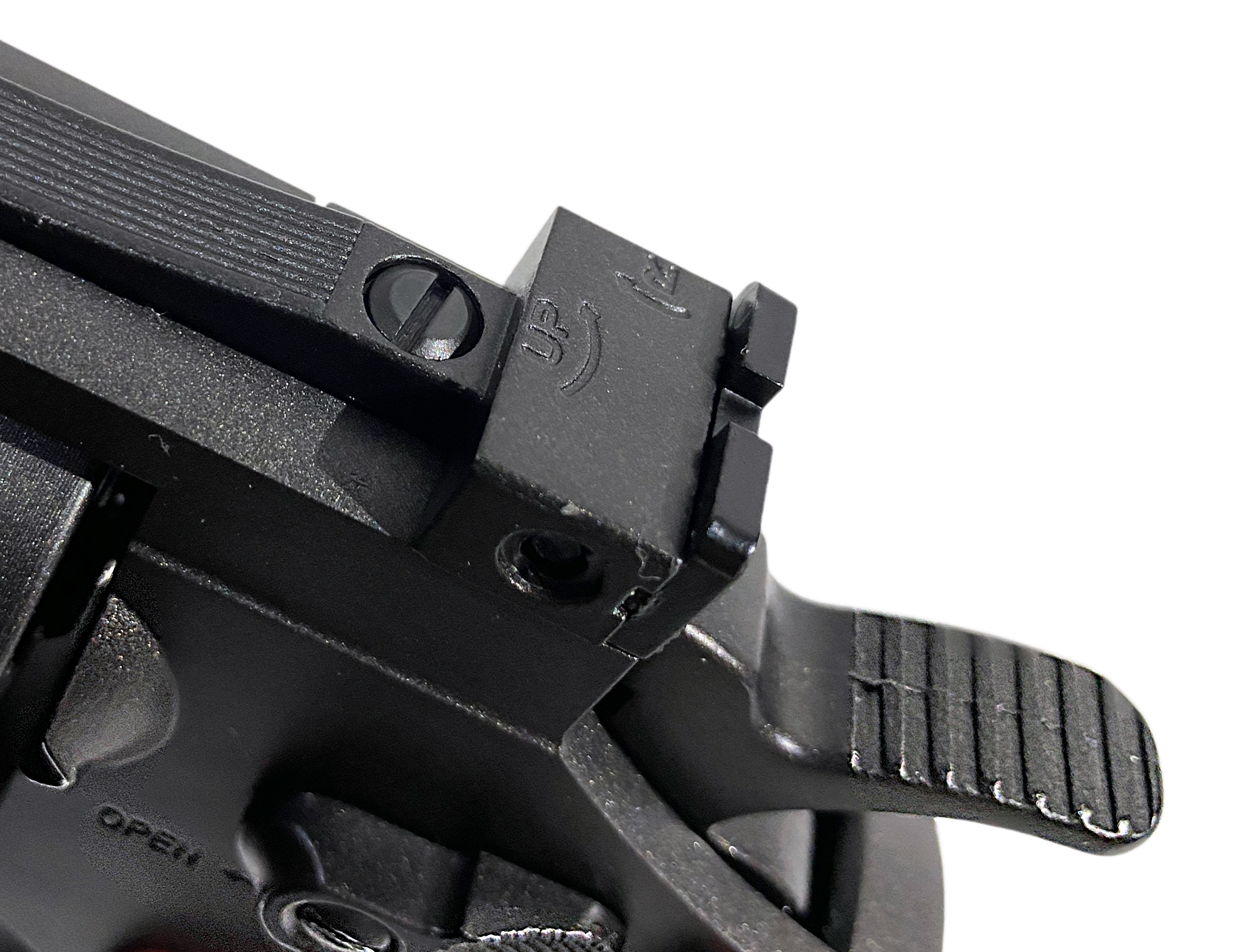 В данном случае идет разделение на два вида: Автоматический и Неавтоматический. Автоматические предохранители срабатывают при не полностью закрытом канале ствола, при взводе рычага взведения или нагнетания. Например, пневматическая винтовка Hatsan 70 ![]() При взведении пластина предохранителя взводится под действием тяги поршня, запирая спусковой крючок (но не шептало). Контролируется предохранитель с помощью рычажка в задней части винтовки ![]() Неавтоматические предохранители включаются и выключаются вручную; обычно выделяют флажковые (рычажные), ползунковые и кнопочные предохранители. Рычаг предохранителя располагается на одной или обеих сторонах оружия, что удобно при стрельбе как с правой так и с левой руки. Как правило, в импортном оружии предохранение включается опусканием рычага вниз, а в отечественном - поднятием вверх. Кнопочный предохранитель представляет собой деталь, которая передвигается поперечно вертикальной продольной плоскости оружия. У винтовок расположение предохранителя более разнообразно, например, он может находиться внутри спусковой скобы перед спусковым крючком или на ствольной коробке наподобие внешнего курка. Например, Охотничья пневматическая винтовка Benjamin Sheridan 397 ![]() Подробнее | неавтоматический, кнопочно-сдвижной |