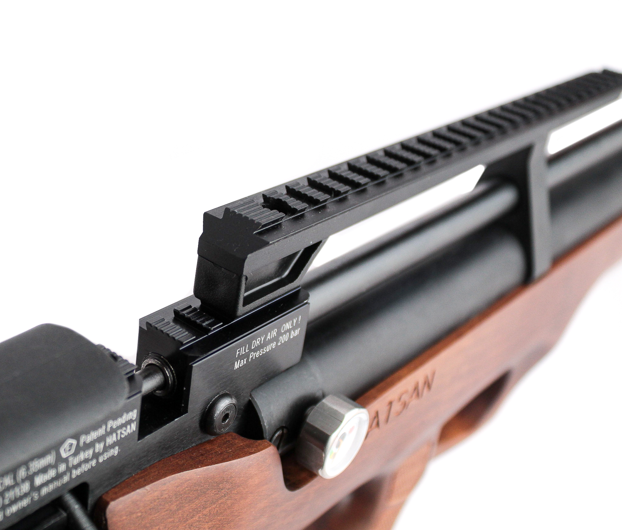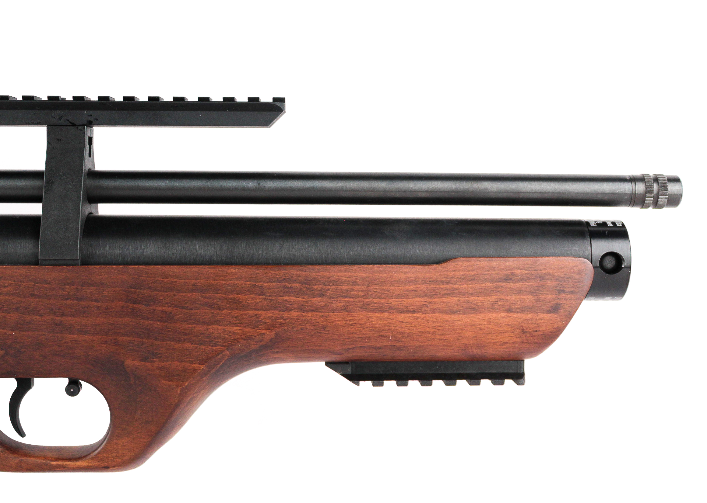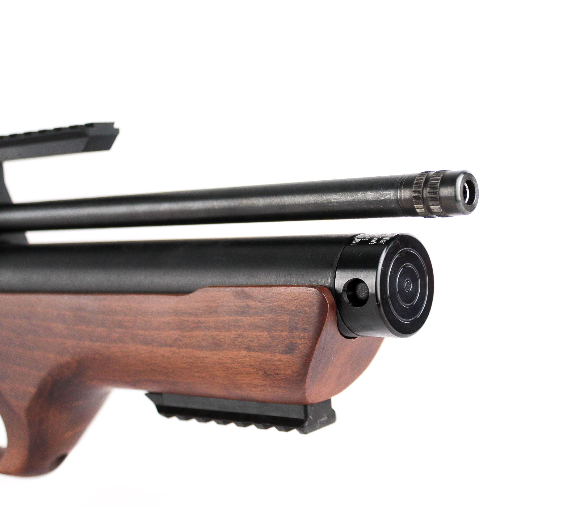 Таких параметров удалось достичь за счет применения компоновки буллпапBullpup - Схема компоновки механизмов винтовок и автоматов, при котором спусковой крючок вынесен вперёд и расположен перед магазином и ударным механизмом.Подробнее и использования баллона высокого давления, который выдерживает до 200 атмосфер и имеет достаточно большой объем, чтобы обеспечить до сотни выстрелов с одной закачки. Важным достоинством является манометр, позволяющий контролировать количество газа в емкости.