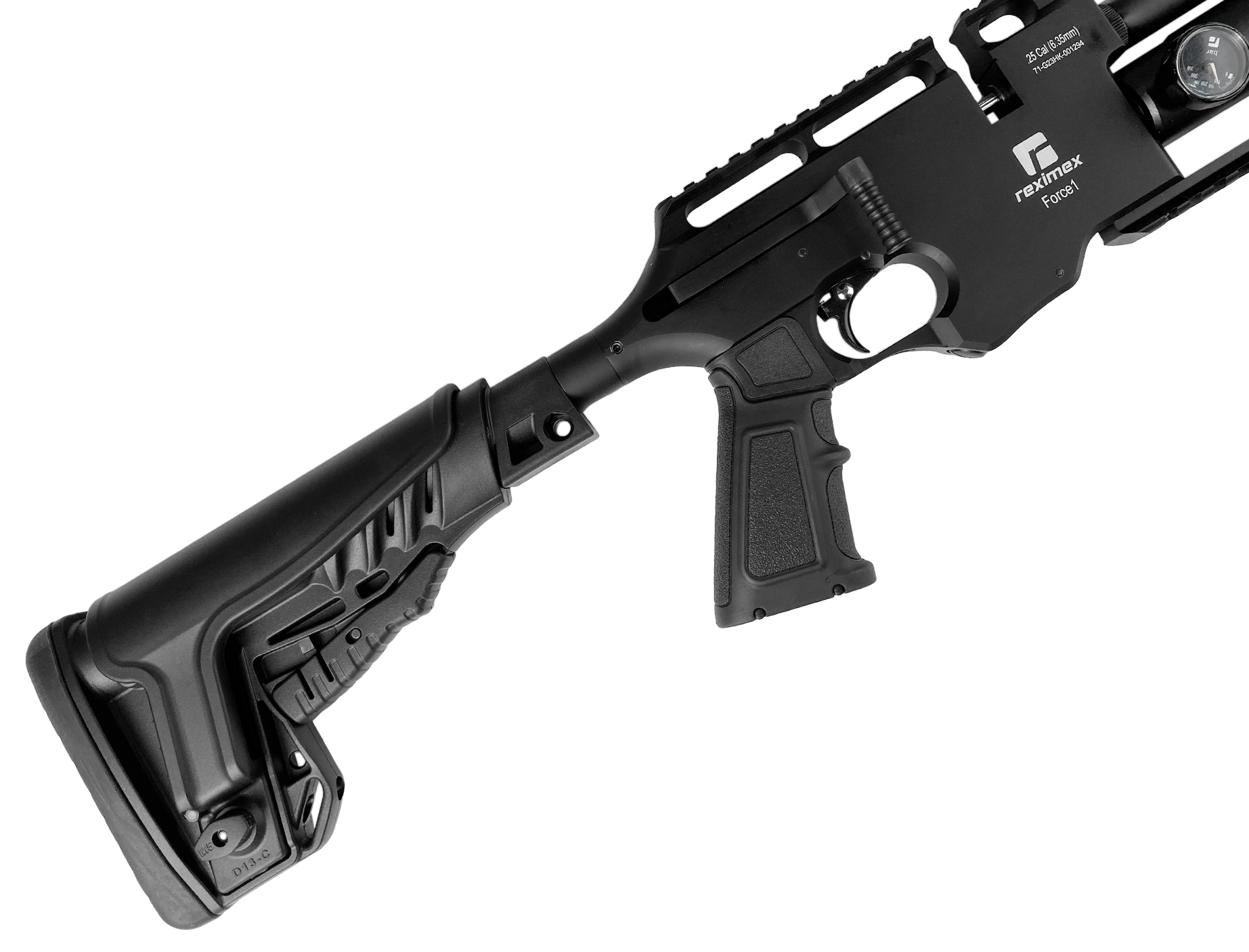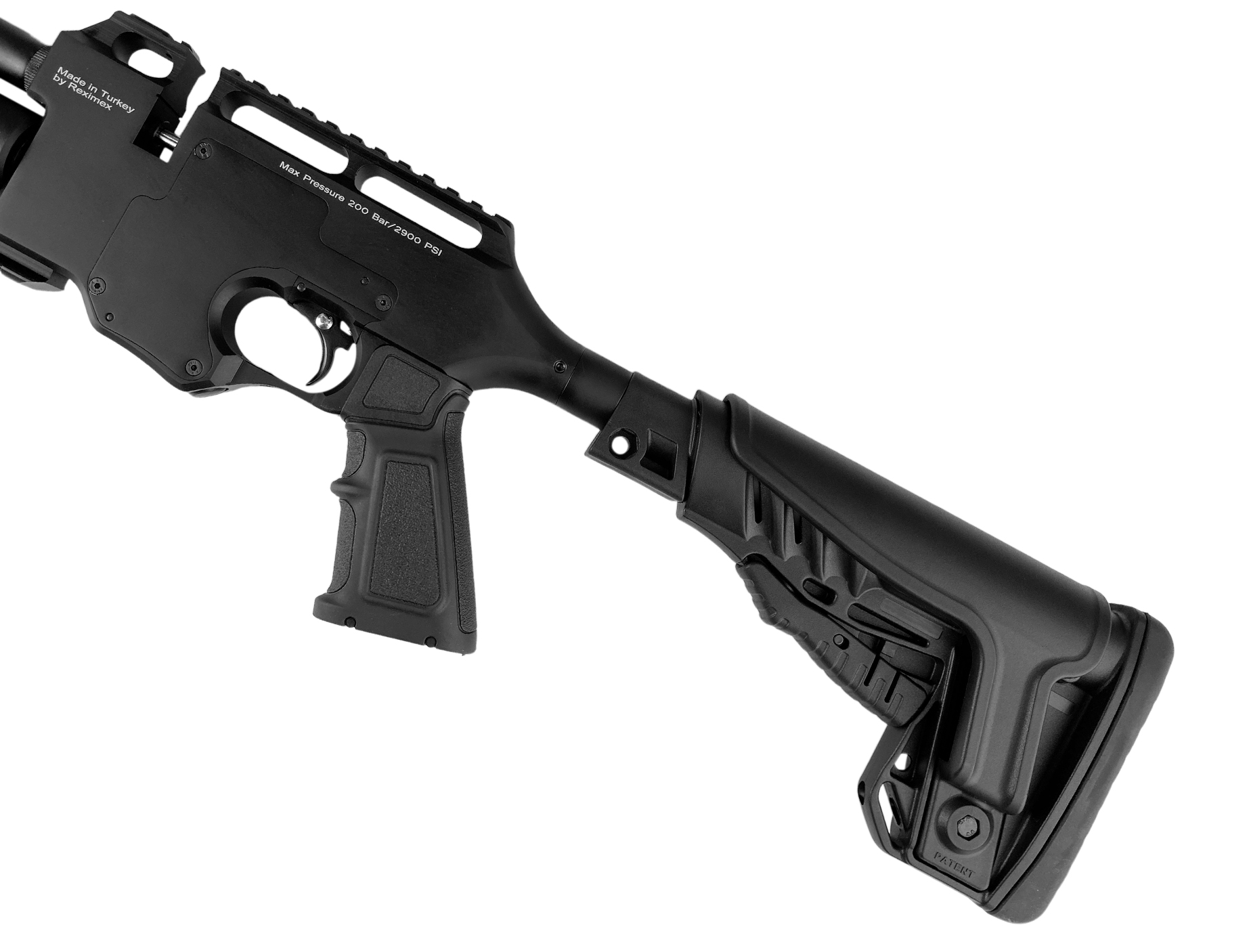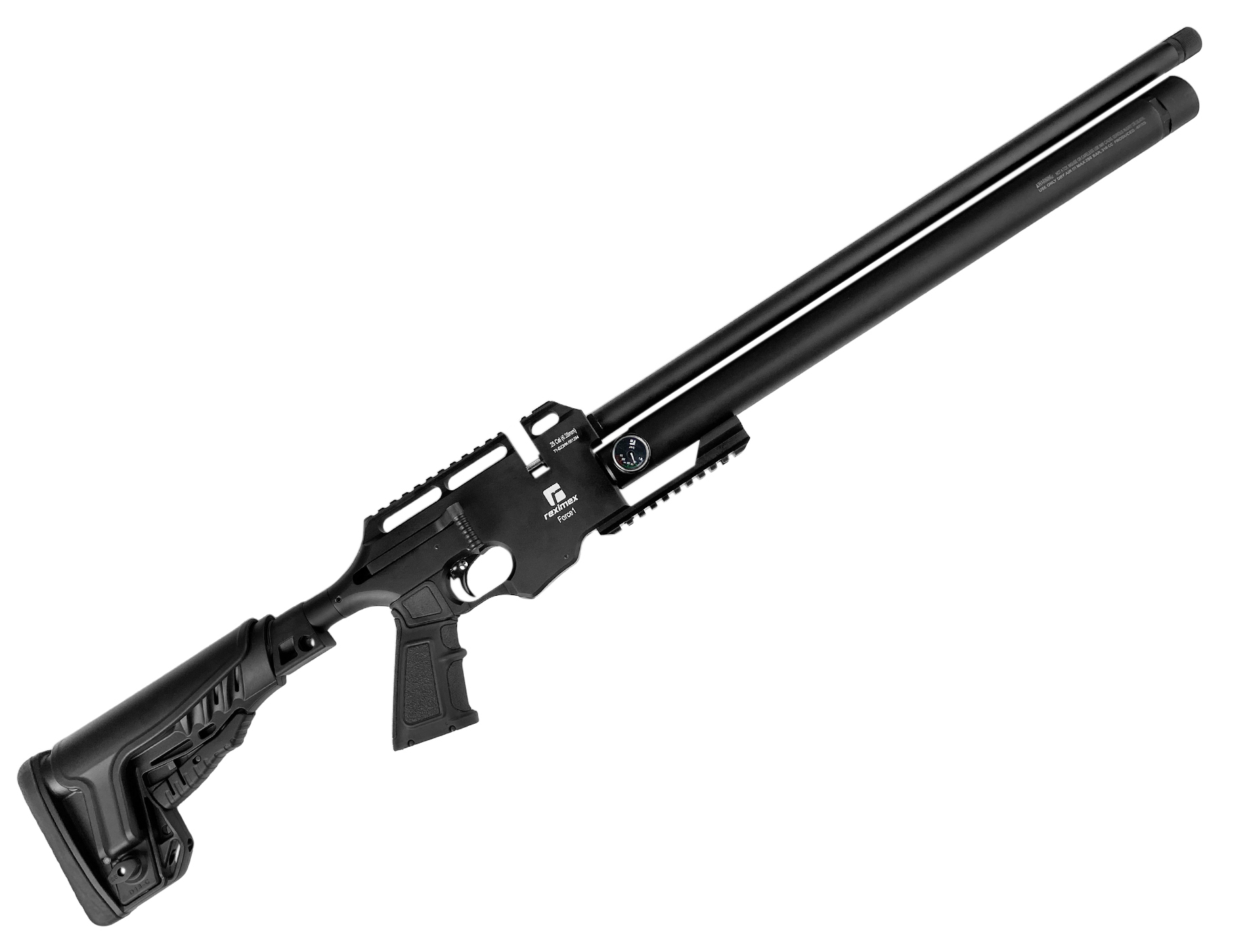 Винтовка в тактическом исполнении от турецкого производителя Reximex - модель с предварительной накачкой ( PCPPCP - это система в пневматических винтовках, которая использует предварительно заряженный воздух или другой газ для создания давления в резервуаре. Это позволяет стрелять из винтовки без необходимости подкачки воздуха после каждого выстрела. PCP системы обеспечивают более высокую точность и мощность выстрела, чем традиционные пружинно-поршневые системы.Подробнее ) калибра 6,35 мм с биатлонным взводом. Винтовка в основном предназначена для спортивно-развлекательной стрельбы. Мощность предлагаемого варианта на превышает 3 Дж, и для его покупки не нужны разрешительные документы.