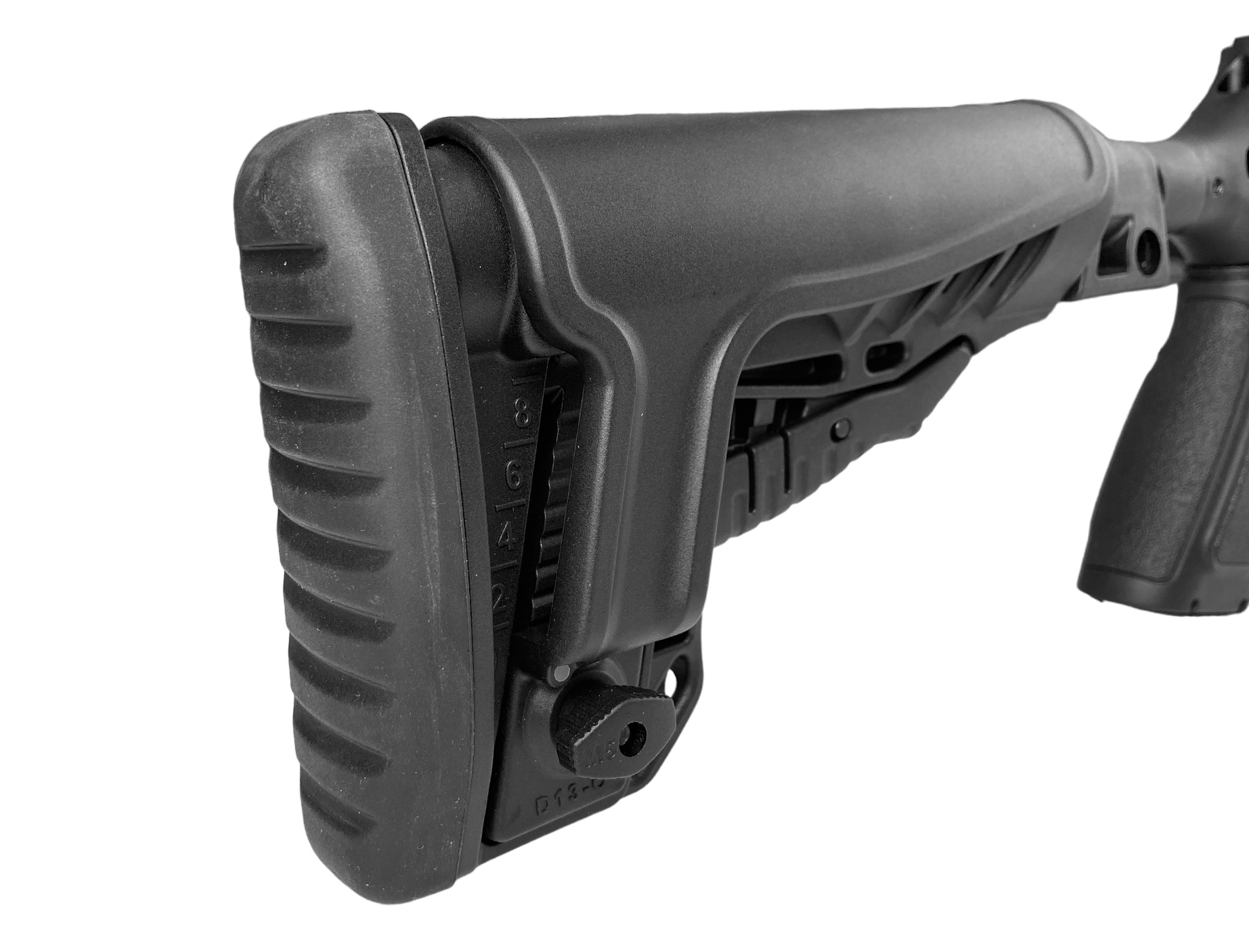 Ложа и пистолетная рукоять винтовки выполнены из пластика черного цвета; приклад телескопический с амортизирующим затыльником и регулируемым подщечником. Магазин барабанного типа вместимостью 10 пуль. Безопасность обращения с оружием обеспечивает ручной предохранитель.