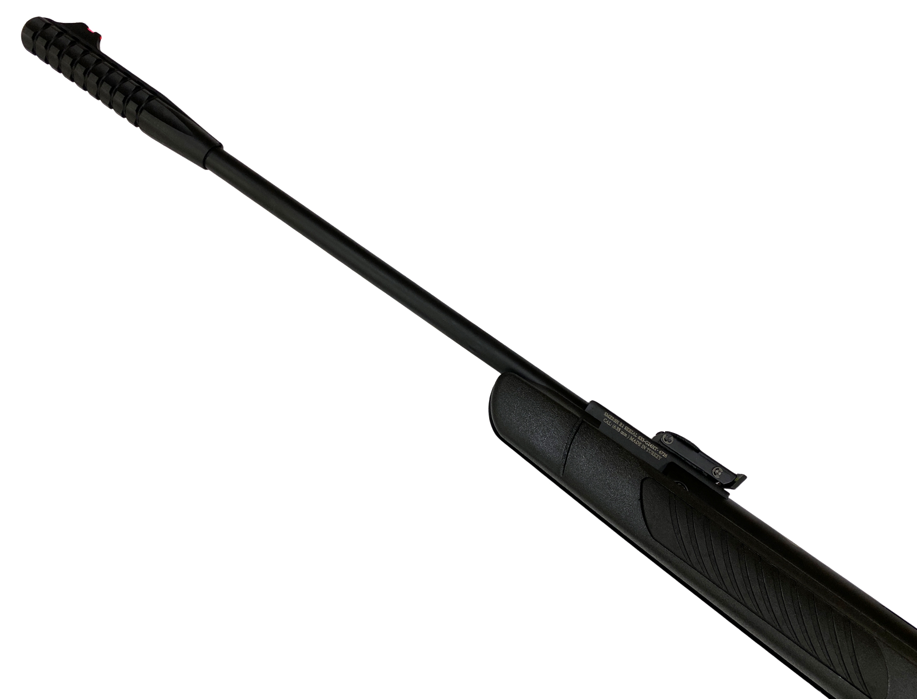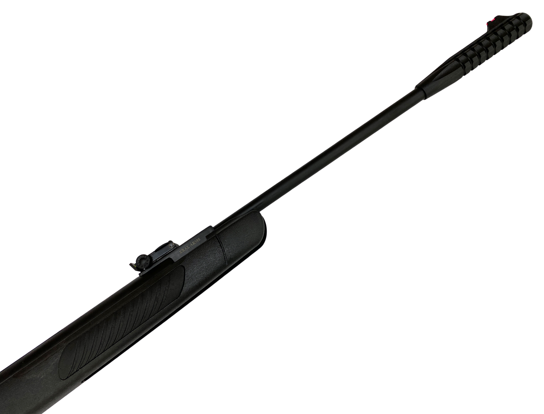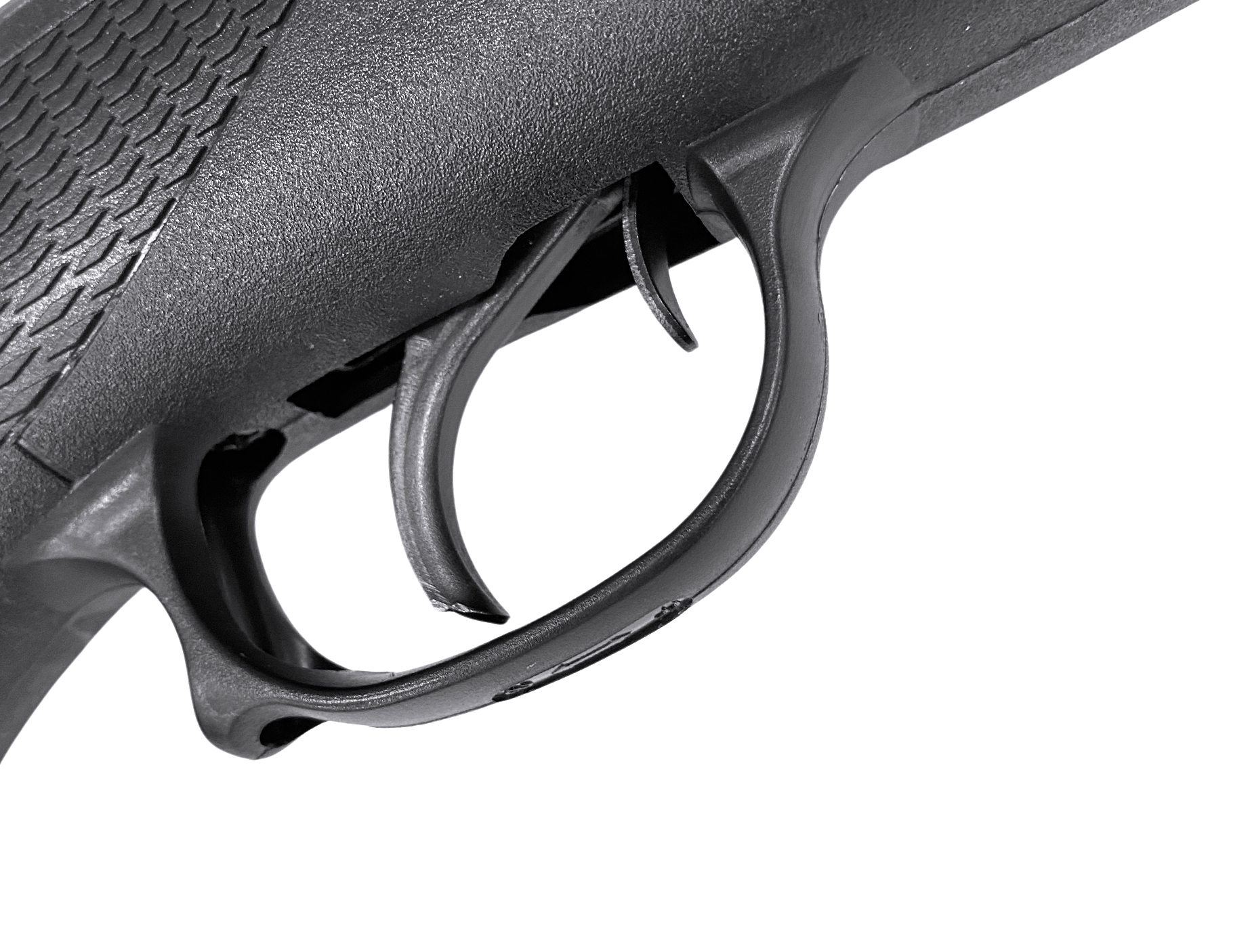Производитель не забывает о безопасности – пневматическая винтовка снабжена рычажным предохранителем у спускового крючка. Указанный элемент блокирует спусковой крючок, не позволяя осуществить бесконтрольный выстрел при случайном нажатии на него.