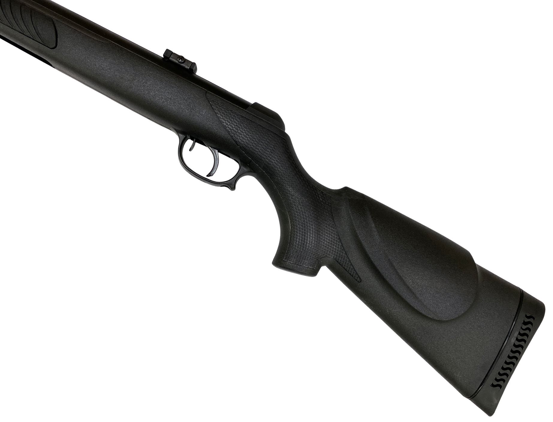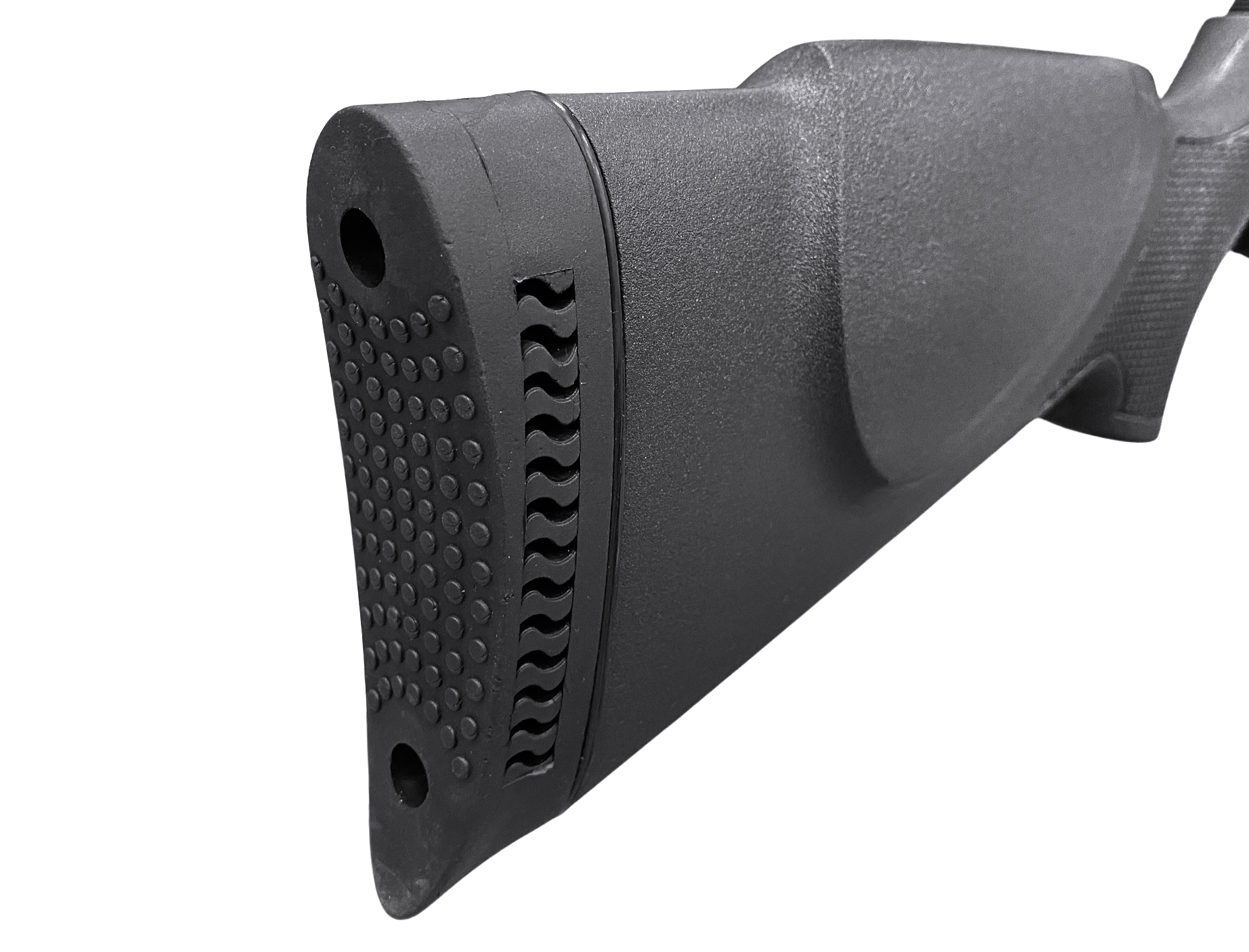 Приклад с ложем выполнены из пластика с повышенной удароустойчивостью. Также нельзя не отметить высочайшую устойчивость пластика к внешним воздействиям. Даже при регулярном использовании на протяжении нескольких лет корпус сохранит свой первозданный внешний вид. Цевье и пистолетная рукояти имеют специальные насечки. Поэтому стрелять с такого оружия будет легко и приятно.