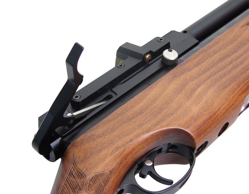 Аристократичная британская внешность винтовки вполне соответствует продуманной внутренней конструкции. Среди наиболее интересных технических решений можно упомянуть боковой взвод прямого действия; десятизарядный барабанный магазин; спортивный ствол Lothar Walther с двенадцатью нарезами, дополнительно защищенный кожухом и имеющий резьбу для установки модератора; манометр, вмонтированный в ложу из натурального дерева (бук или орех); УСМ двойного действия с возможностью регулировки; вместительный баллон, обеспечивающий до шестидесяти выстрелов и т.д.