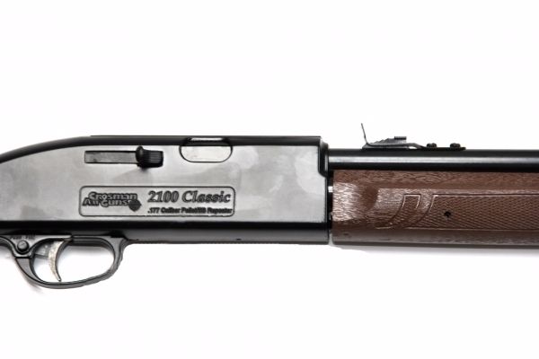 Crosman 2100 В — многофункциональная пневматическая винтовка. Она подойдет и для охоты, и для развлекательной стрельбы по мишеням. Давление воздуха, необходимое для стрельбы, обеспечивается предварительной накачкой посредством специального рычага. В качестве боеприпасов используются стальные шарики и свинцовые пульки. Ствол — стальной, ложа — прочный пластик. Рукоять пистолетного типа используется в качестве бункера для металлических шариков. Свинцовые пули заряжаются сбоку.