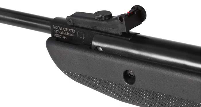 Редкий поклонник пневматического оружия сможет равнодушно пройти мимо винтовки Crosman CS1K77 Phantom. Ее стильный дизайн моментально приковывает взгляд, а боевые качества заслуживают всяческих похвал. Впечатляющую точность стрельбы винтовки во многом обеспечивает длинный ствол, сделанный из специально разработанного сплава. Красные и зеленые фибероптические нити на прицельной планке и мушке помогают целиться в условиях плохой освещенности. А приятный на ощупь пластик и отличная развесовка вызывают желание не выпускать оружие из рук.