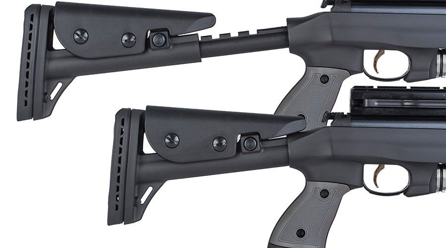 На данный момент это уже третья, улучшенная модификация HATSAN AT 44-10. Была добавлена возможность регулировки щеки приклада и планки "вивер" для крепления сошек или тактического фонаря.