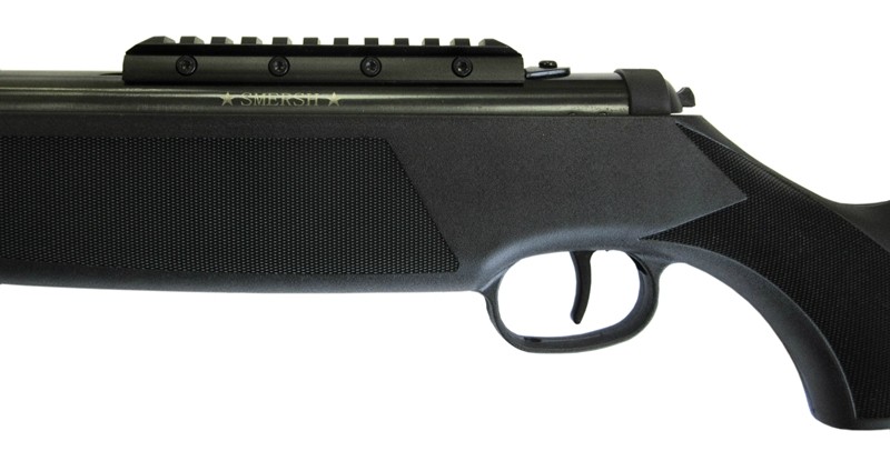 Smersh R4 - это классическая пружинно-поршневая винтовка с энергией до 7,5 Дж. Взвод боевой пружины производится стандартным переламыванием ствола. Автоматический предохранитель блокирует, при взведении, спусковой крючок, защищая от непреднамеренного выстрела. Кнопка предохранителя расположена позади ствольной коробки.