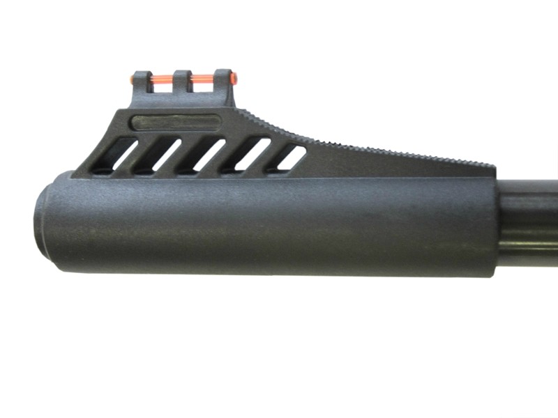 Ложа - пластик, приклад типа «Монте-Карло» с резиновым затыльником. Пистолетная рукоятка и цевье снабжены мелкими насечками для более уверенного хвата. Возможность отрегулировать спусковое усилие. Открытые прицельные приспособления с микрометрической регулировкой по горизонтали и вертикали оснащены светонакопительными элементами. Предусмотрена возможность установки оптического или коллиматорного прицела.