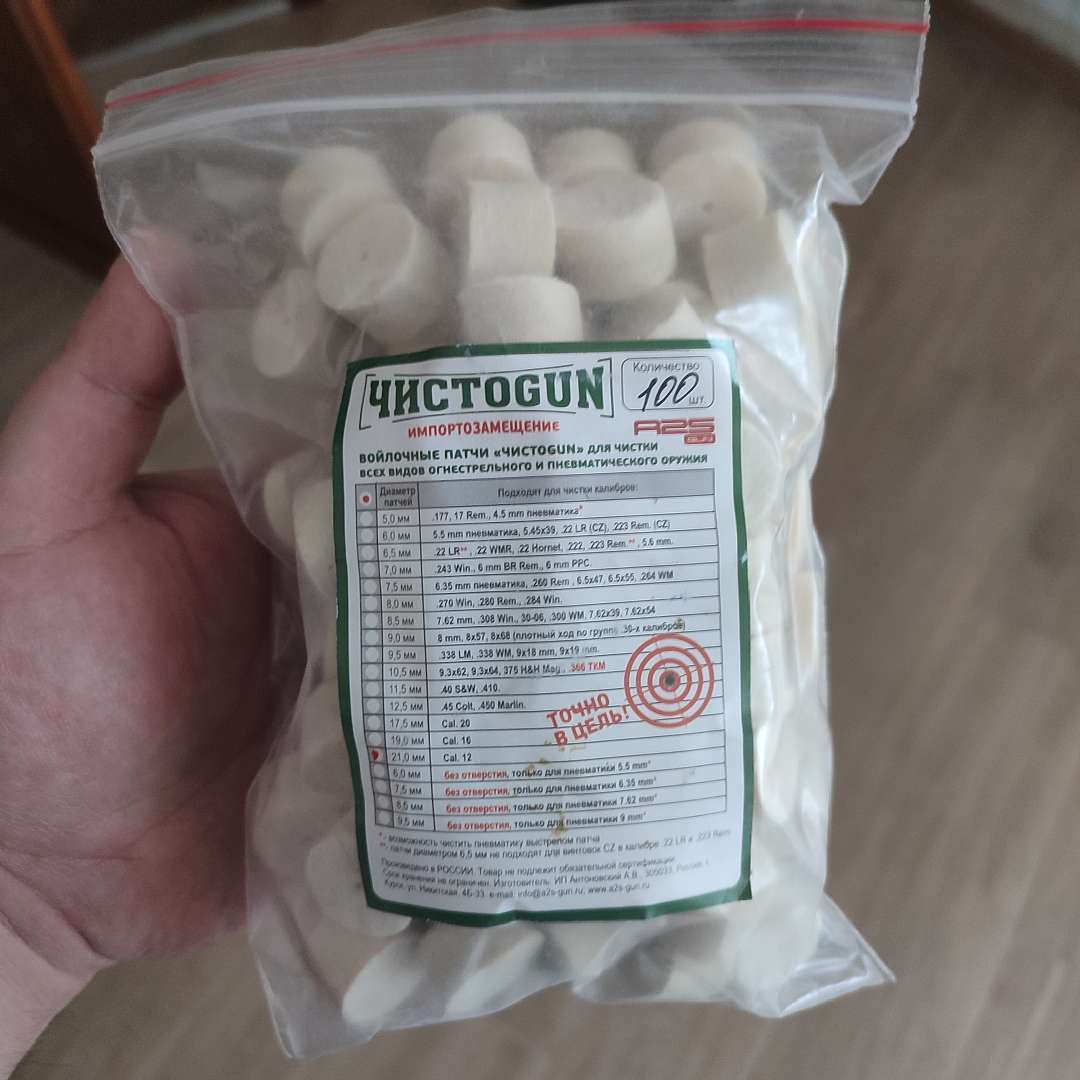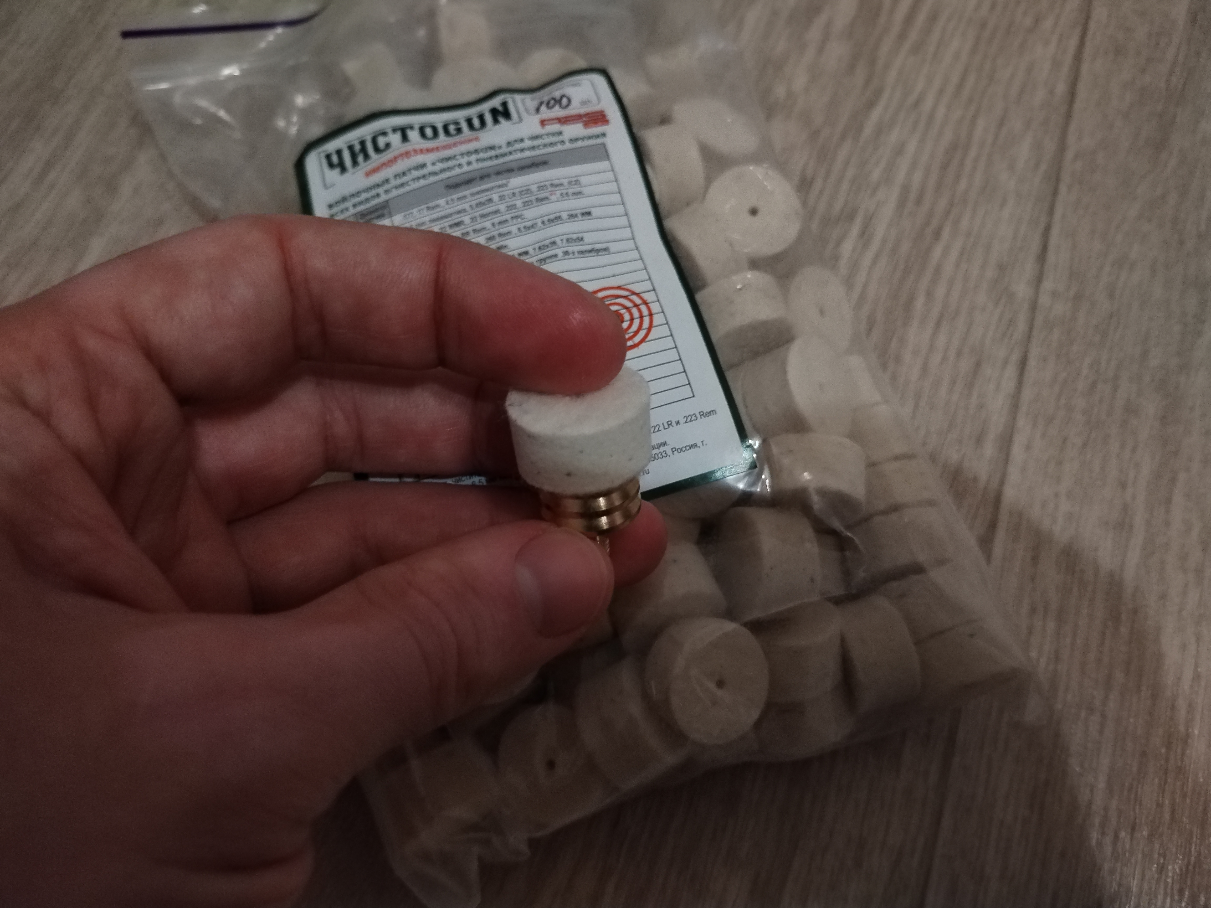 Перед стрельбой, из канала ствола необходимо удалить масляную пленку, достаточным количеством войлочных патчей.