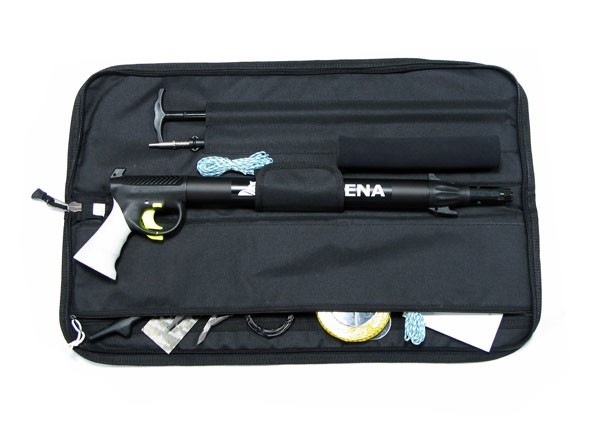 В этом чехле как в контейнере помещается полностью снаряженное ружье, с катушкой, гарпунами, наконечниками, линем, насосом и подствольным фонарем, а также паспорт на ружье ну и конечно ЗИП (Запасные части, Инструменты, Принадлежности ), и другие мелочи. Чехол защитит ваше оружие от песка, пыли и механических повреждений.