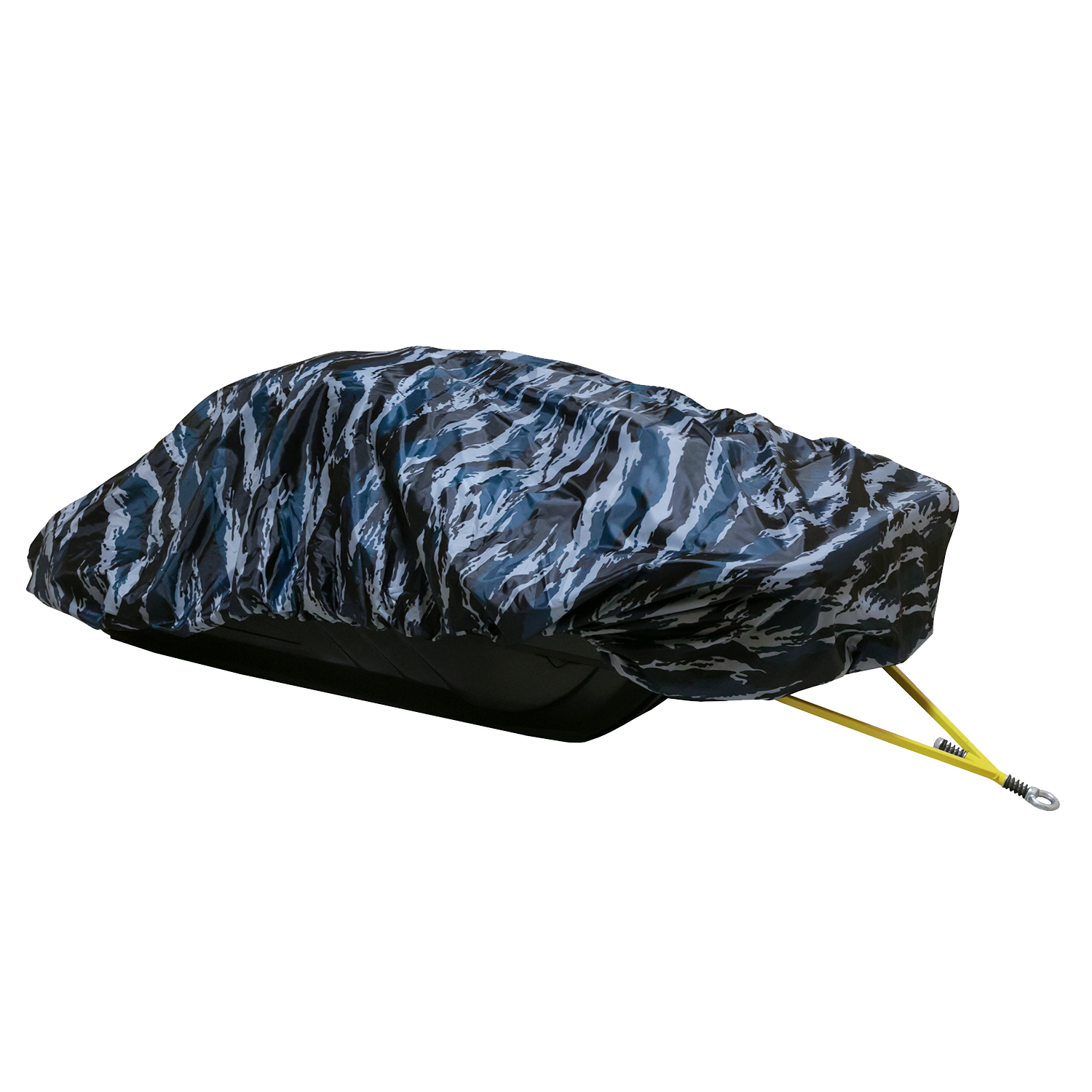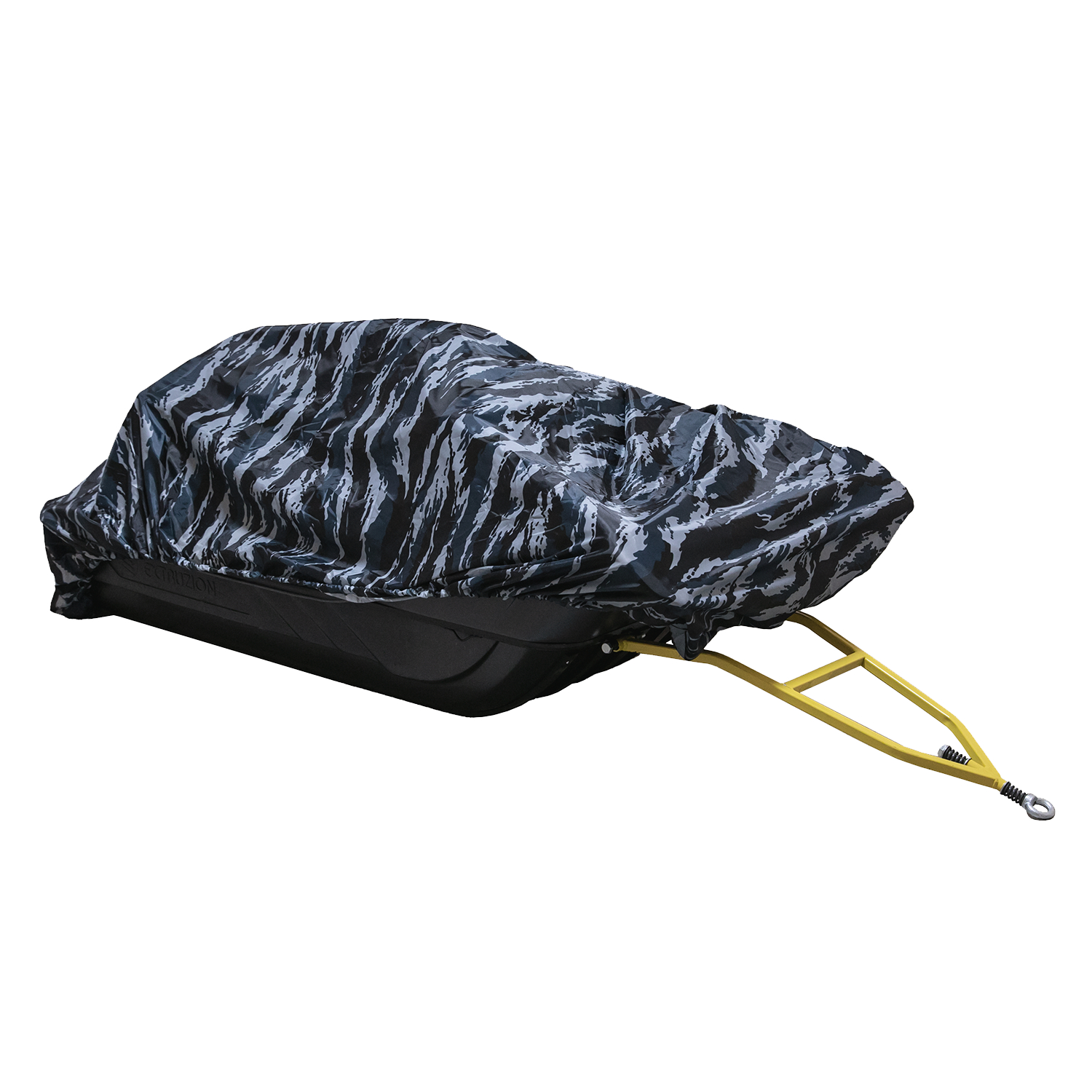 На изнаночную сторону ткани Oxford 600D нанесено водонепроницаемое полиуретановое плёночное покрытие.Подробнее с водоотталкивающей пропиткой. Толстая и прочная резинка по периметру надежно удержит чехол при движении на высокой скорости, а утяжка поможет отрегулировать по размеру саней. Для универсальности использования чехол имеет запас по высоте 15 см, что даёт возможность перевозить грузы выше борта саней.