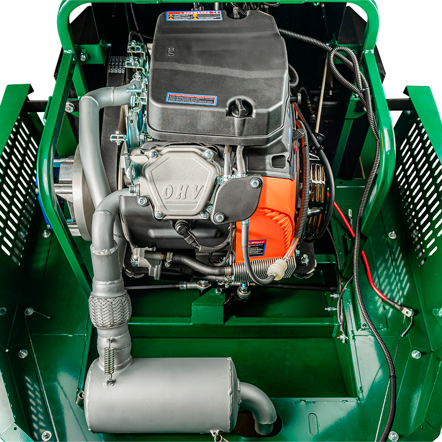 Модель оснащена 4-тактным бензиновым двигателем мощностью 20 л.с. от проверенных производителей Lifan/Loncin. Такой двигатель обеспечивает надежность, экономичность и стабильную работу даже при низких температурах. Он легко запускается вручную и поддерживает скорость до 45 км/ч, что делает передвижение быстрым и комфортным.