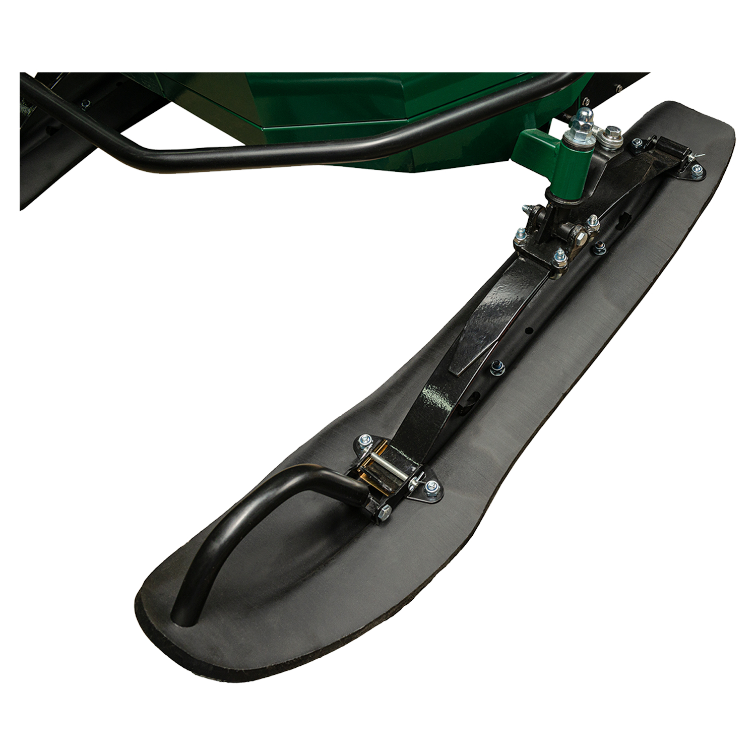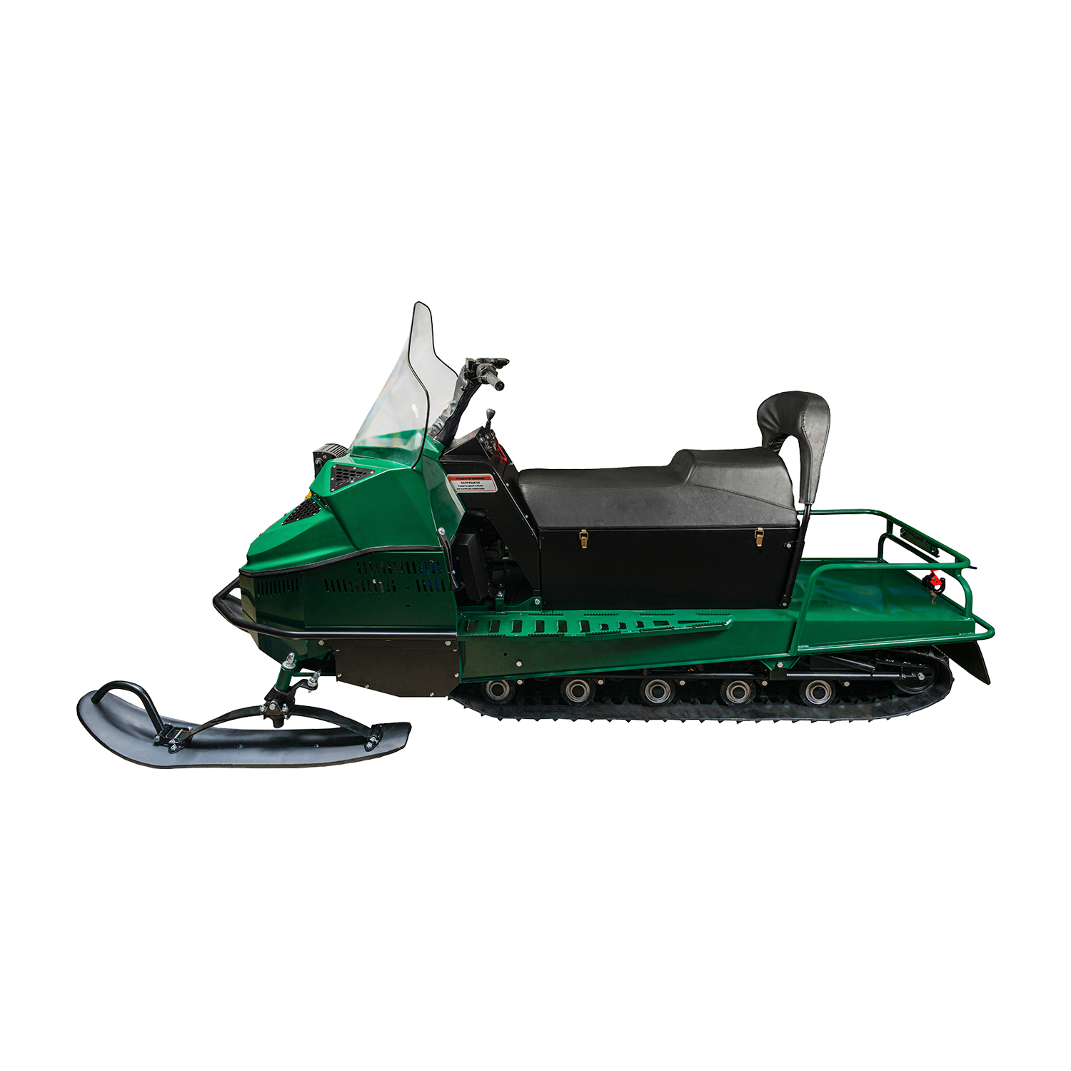 Гусеница длиной 3937 мм и шириной 600 мм обеспечивает отличную устойчивость и проходимость. Лыжи длиной 1060 мм и шириной 230 мм добавляют маневренности и стабильности. Конструкция снегохода выдерживает нагрузку до 150 кг, что делает его подходящим для перевозки груза или второго пассажира.