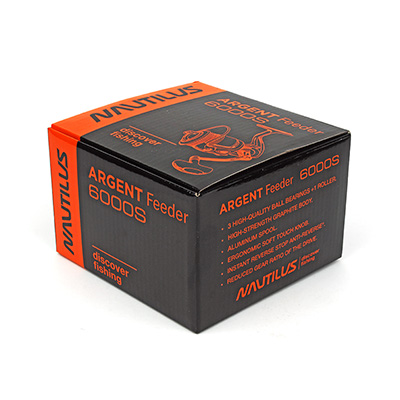 Nautilus Argent Feeder - фидерная катушка размером 6000S. Классический дизайн, мощный и надежный механизм, а главное доступная цена, делают ее незаменимым помощником на рыбалке. Размер 5000 отлично сочетается с леской при методной и классической ловле карпа.