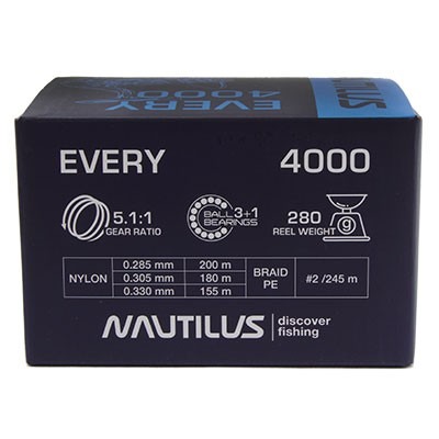 Nautilus Every - надежный и недорогой вариант катушки "для всех". Все плюсы "старших" моделей - ход, отсутствие лишних люфтов и качественная намотка.