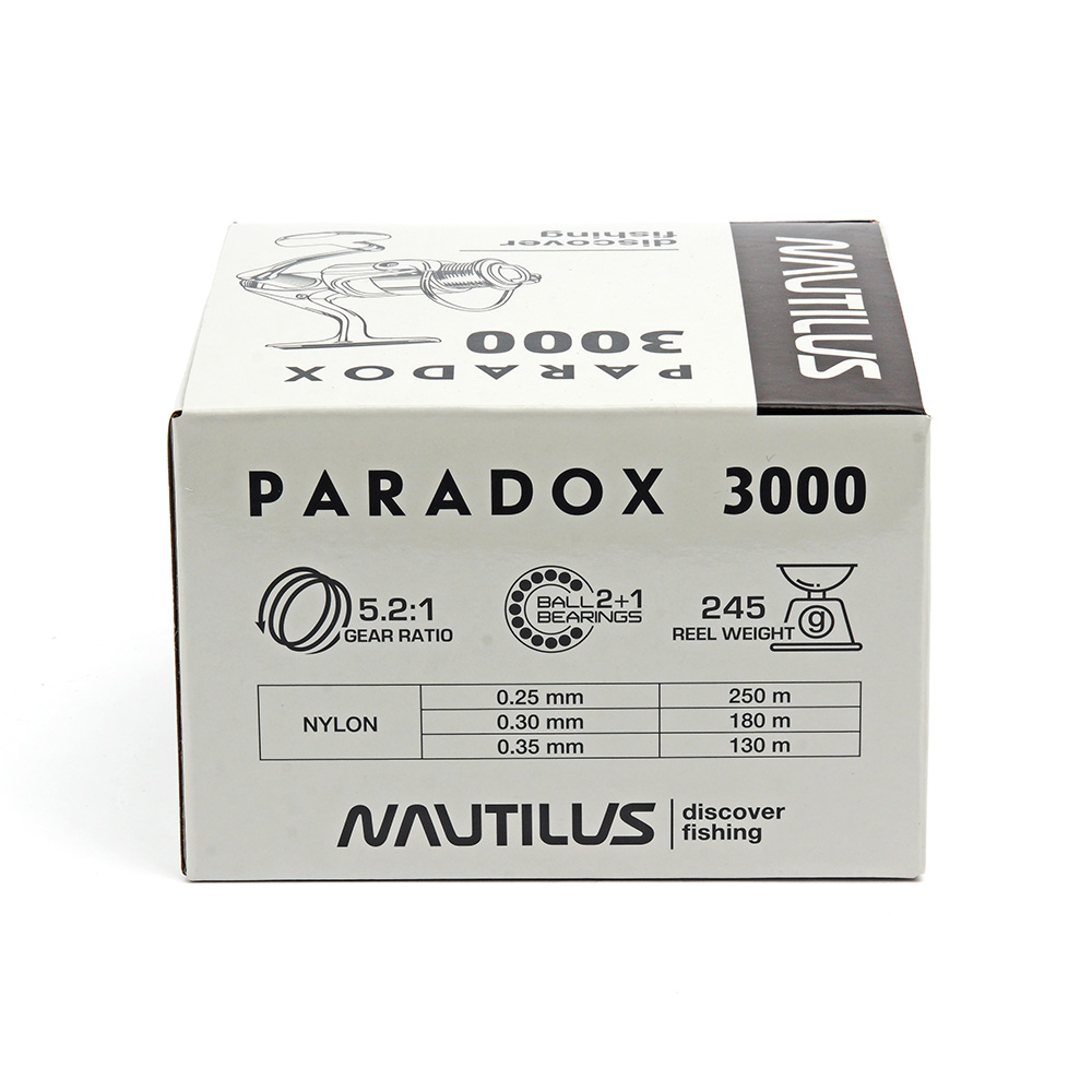 Nautilus Paradox – хороший выбор для рыболовов, ищущих надежную катушку в среднем ценовом сегменте. Подойдет для ловли на блесны, воблеры и джиг в пресной воде. Алюминиевая шпуля и передний фрикцион делают ее удачным вариантом для ловли средней и крупной рыбы (щука, окунь, жерех).