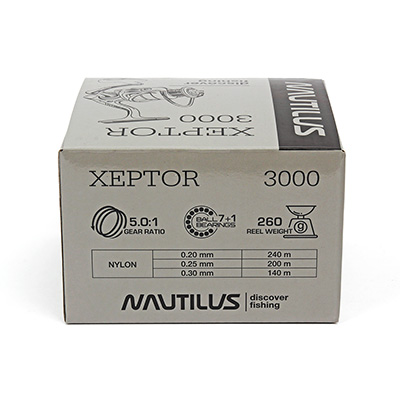 Nautilus Xeptor - спиннинговая катушка высокого уровня. Применяемые материалы и технологии позволили добиться легкой и плавной работы механизма. Также при разработке уделили большое внимание надежности и "неубиваемости" катушек, долговечности и прочности.