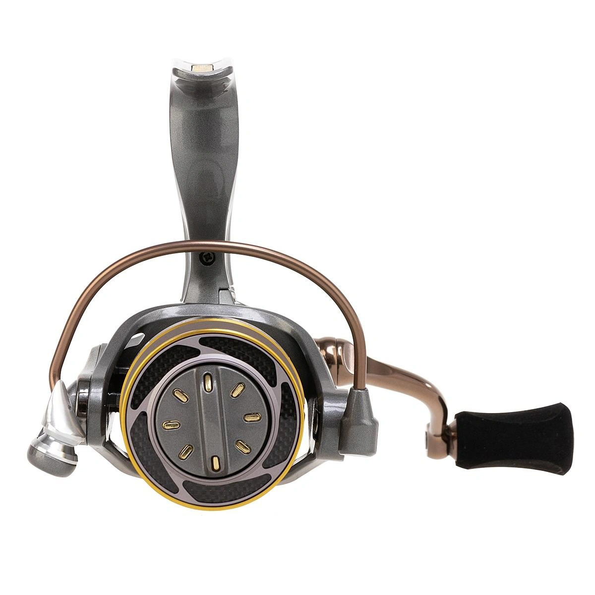 Обновленная шпуля обладает модернизированным бортиком, он приобрел скошенный удлиненный профиль и способствует легкому сходу лески. Уже привычная полая дужка лесоукладывателя венчается роликом, который оснащен также подшипником.