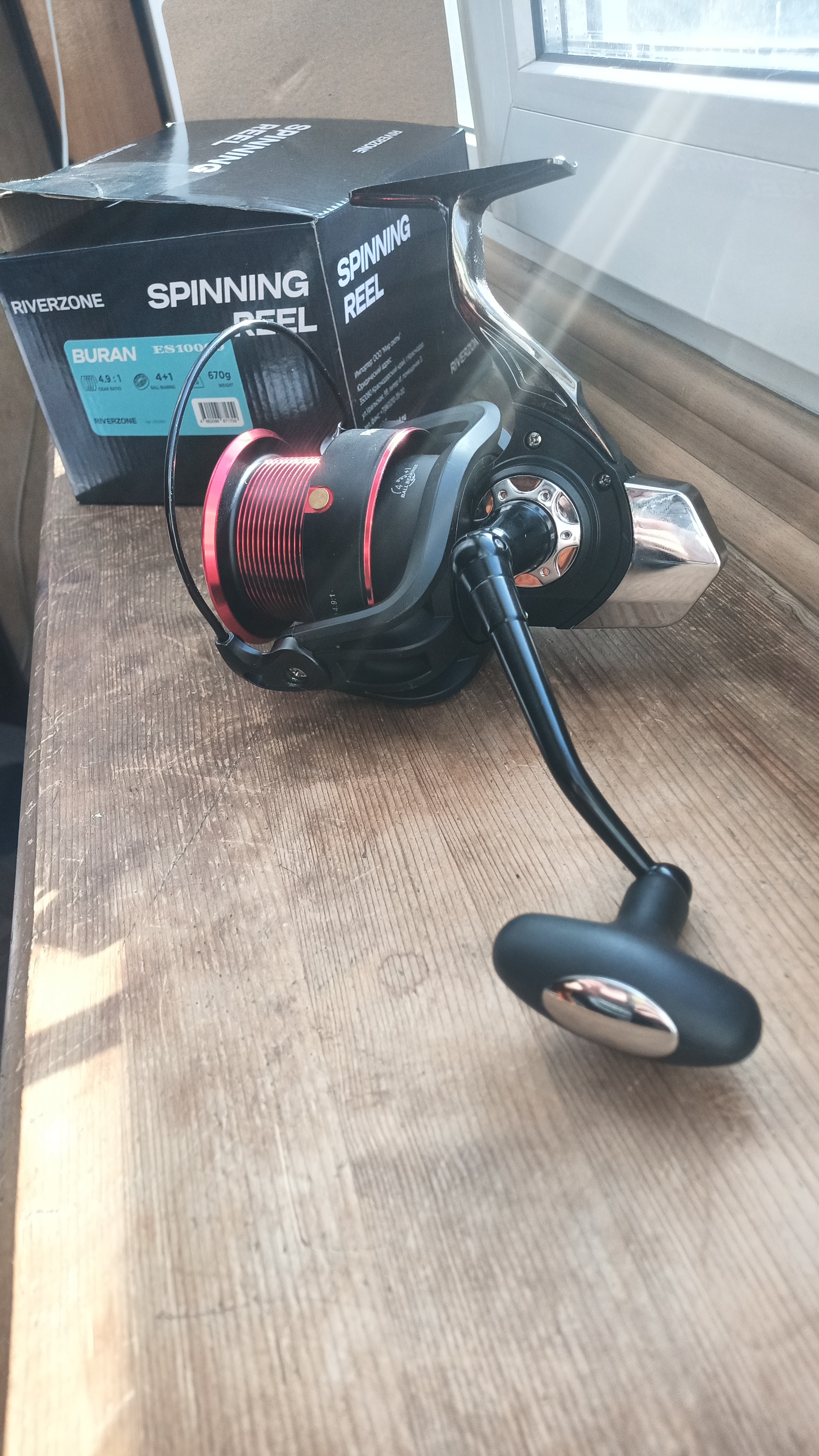 Вес всего 670 грамм, учитывая что эта катушка обладает внушительным размером. Удобный Т-образный кноб не выскочит даже из мокрых пальцев. Лесоукладыватель имеет полую дужку для уменьшения веса.
