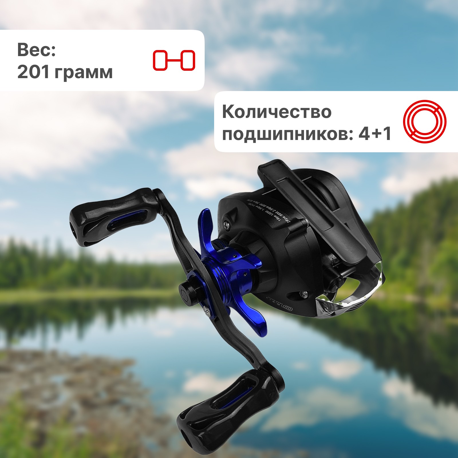 Магнитный тормоз работает в нескольких позициях позволяя работать с разными весами приманок: