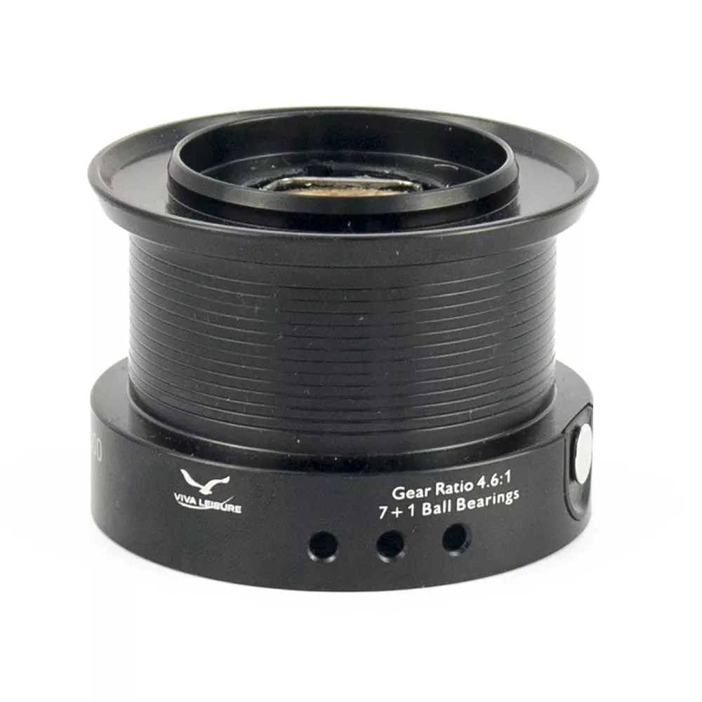 Конструкция фидерной катушки Viva Top Feeder была позаимствована у "старших собратьев" из карповой ловли. Она сочетает в себе все преимущества "топовой" карповой катушки и при этом обладает небольшими габаритами и весом. Бесконечный винт в конструкции главной пары отвечает за идеальную намотку лески или шнура. Защитная юбка исключает попадание лески или плетеного шнура под шпулю. Низкое передаточное отношение 4,6:1 позволяет ловить кормушками весом до 200 грамм. Низкопрофильная шпуля позволяет вместить около 200 метров лески диаметром 0,25 мм без добавления бекинга. Круглая широкая металлическая клипса не повреждает леску и способствует быстрому клипсованию, что так ценится рыболовами-любителями и спортсменами по всему миру.