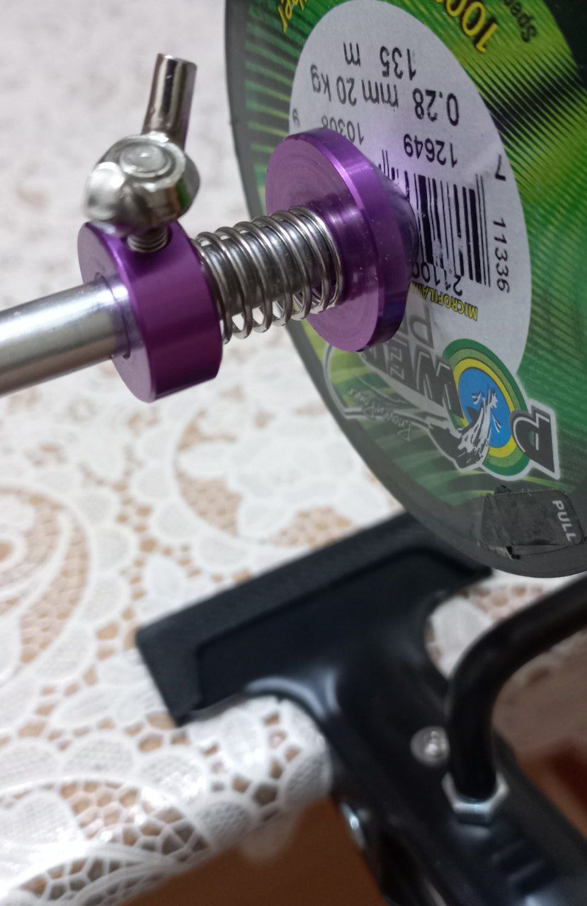 Шпуля надевается на ось и с торцов прижимается двумя подпружиненными конусами. Силу сжатия пружин можно регулировать, выставляя оптимальное натяжение лески. С эинструментом вы забудете, что такое перебежки, запутывание, повреждение лески в процессе намотки. Вы получите укладку с равномерным натяжением, что предотвратит запутывание лески при забросе.