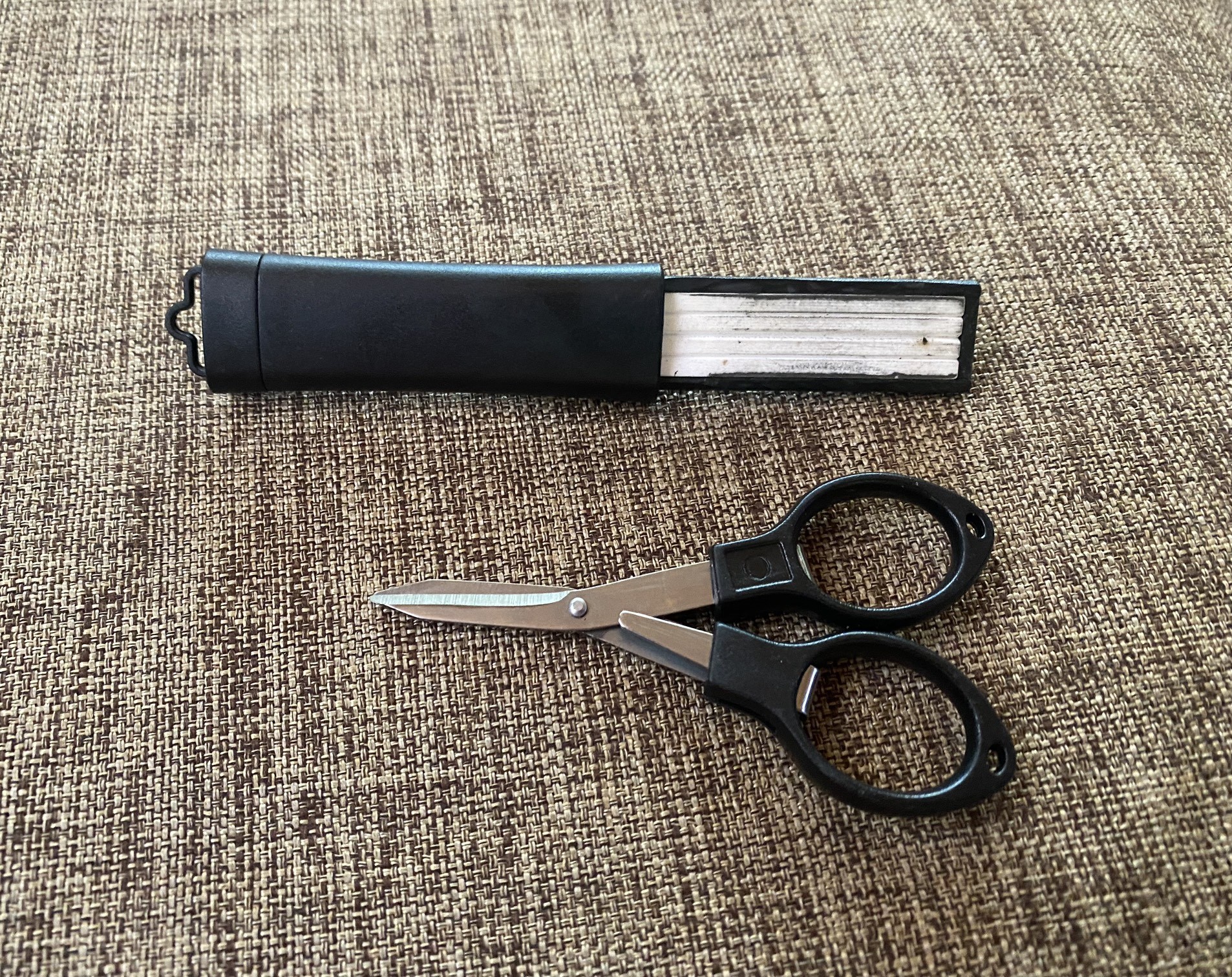 Этот компактный набор для рыбалки содержит ножницы и точилку для крючков, что позволяет всегда иметь необходимые инструменты под рукой. Размеры набора в сложенном состоянии составляют 90x27 мм, а в разложенном - 95x55 мм, что удобно для хранения и переноски.