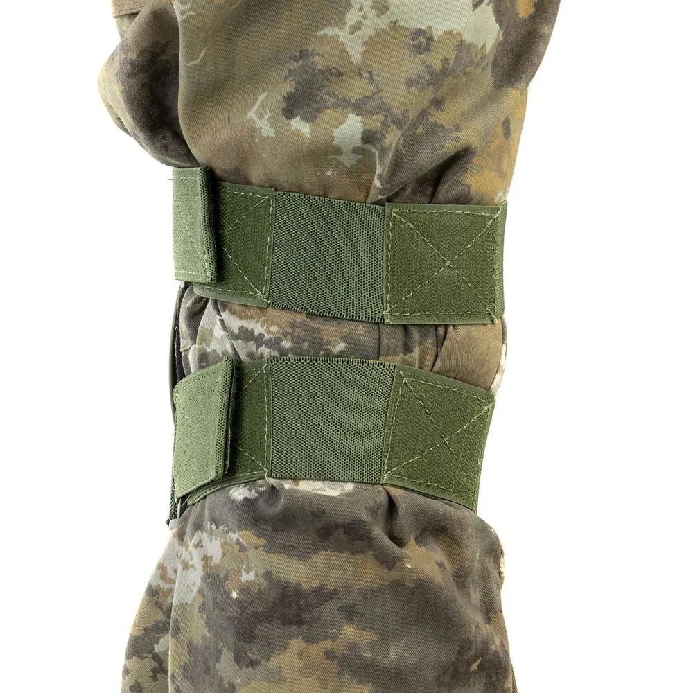 Накладки также защищают основную ткань от механических повреждений, потому такие наколенники будут служить долго. Модель надежно крепится на ноге при помощи липучек.