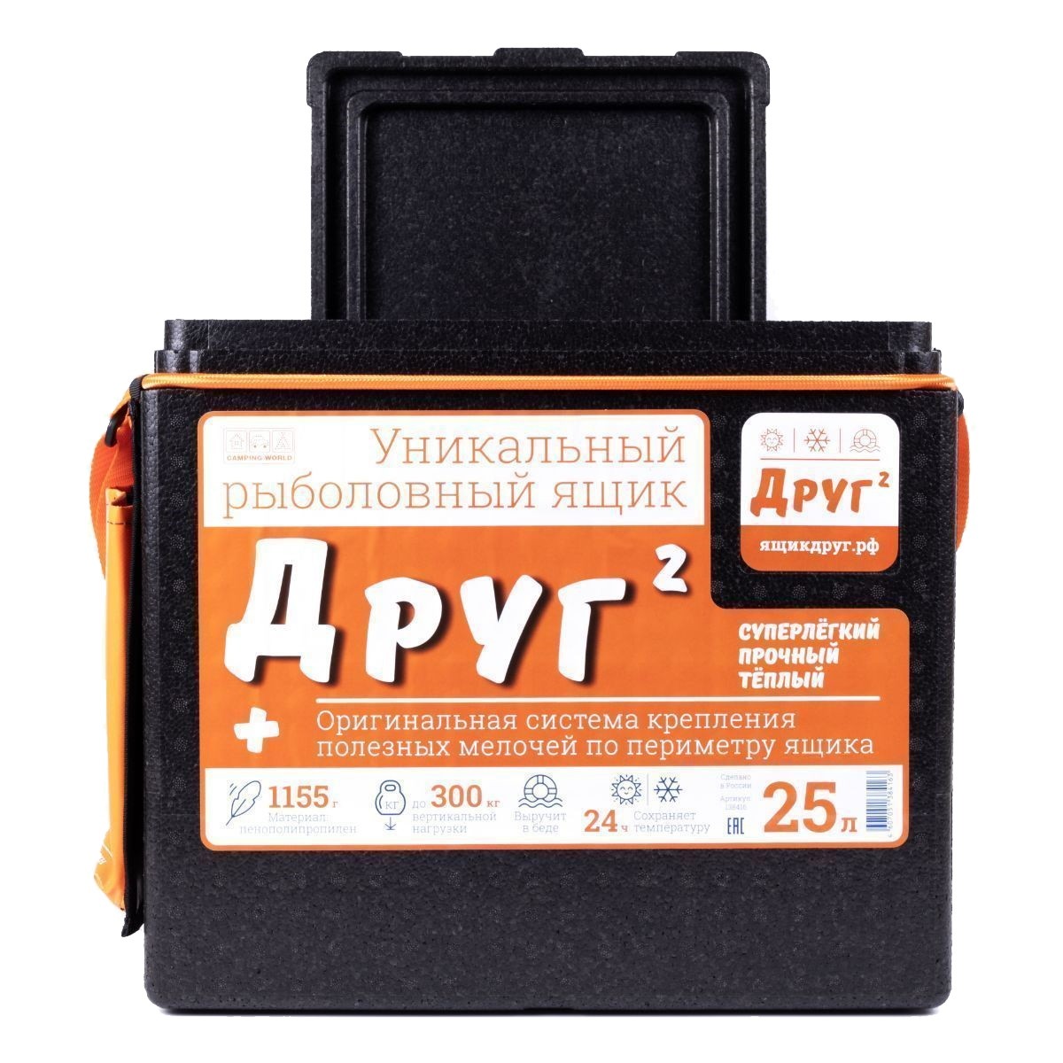 Серия рыболовных ящиков-поплавков, разработана в ТД «Кемпинг2000» с учётом требований к комфорту и безопасности на зимней рыбалке. Высокие показатели по времени сохранности продуктов, большая допустимая вертикальная нагрузка, легкость ящика, и его способность удерживать даже одетого по-зимнему человека на плаву, делают его несомненным лидером рынка по соотношению цена-комфорт-полезность среди подобной продукции. Ящики из EPP имеют повышенные прочностные характеристики (по сравнению с изделиями из ППС) и великолепный внешний вид.