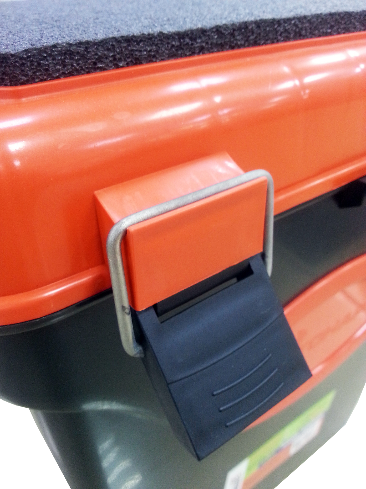 На передней стенке предусмотрено удобное по форме отверстие, куда без труда можно положить пойманную рыбу, не вставая с сидения. Внутри ящика за этим отверстием необходимо закрепить пакет, в котором улов будет аккуратно лежать, не пачкая внутреннее пространство и снасти.