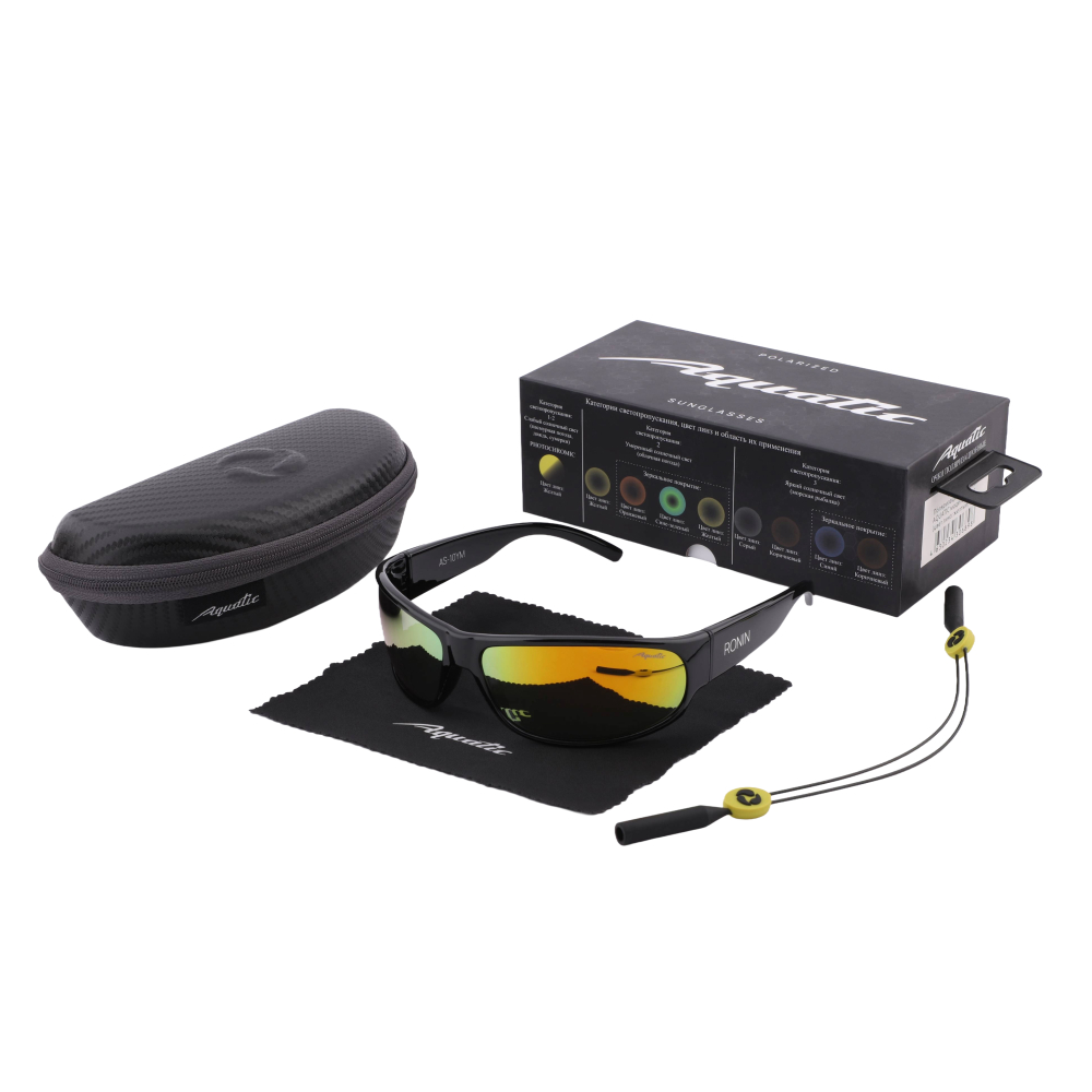 Серый цвет линз не искажает цветовую гамму, не утомляет глаза и подходит практически к любым условиям. Категория защиты глаз UV400UV400 - это стандарт в солнцезащитных очках, который указывает на то, что линзы способны блокировать ультрафиолетовые (УФ) лучи длиной волны до 400 нанометров.Подробнее - линзы способны блокировать ультрафиолетовые лучи длиной до 400 нм, предотвращая пагубное воздействие солнечного излучения на глаза. Очки AQUATIC поглощают 100% ультрафиолетового излучения. Желтое зеркальное напыление линз Yellow Mirror позволит вам выглядеть стильно.