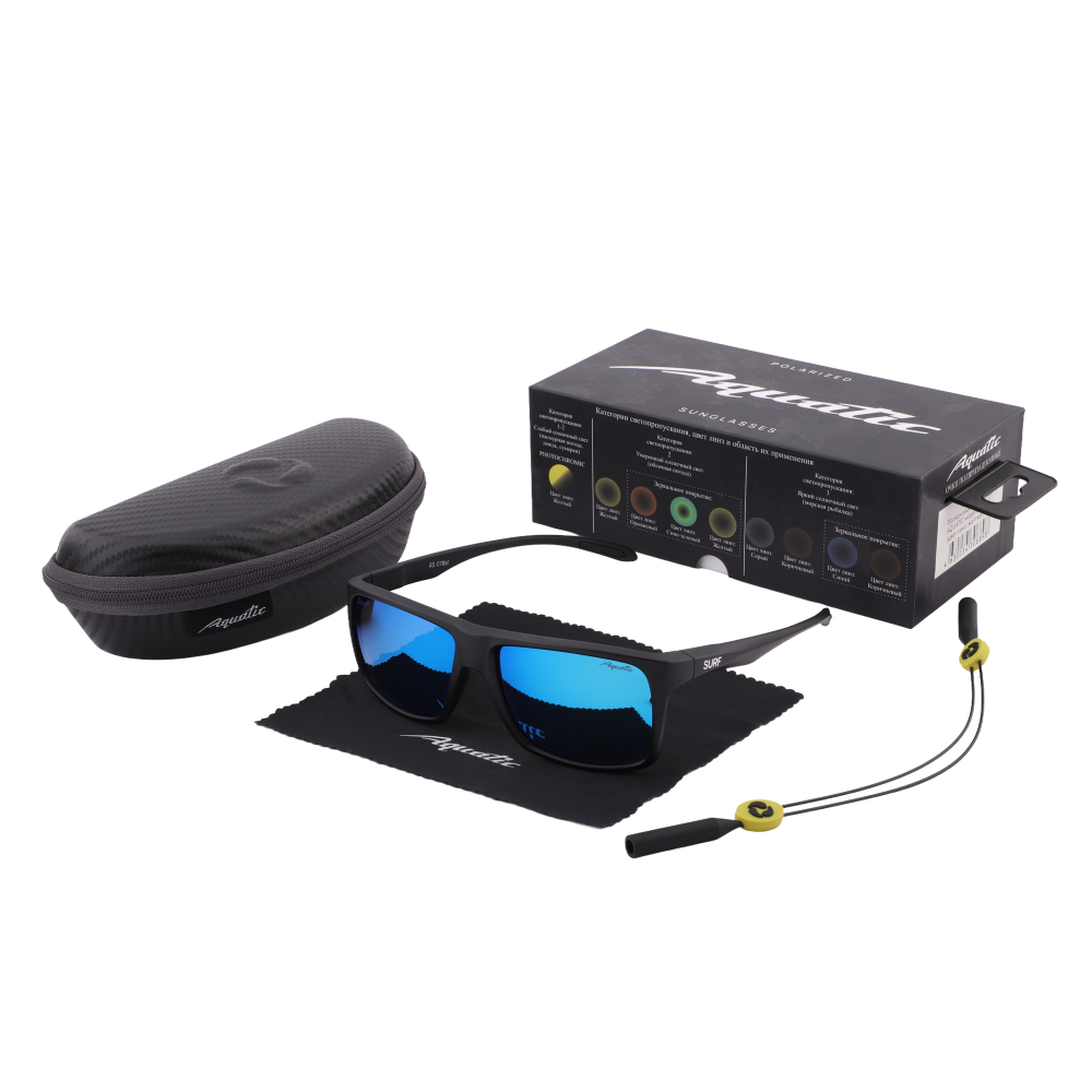 Серый цвет линз не искажает цветовую гамму, не утомляет глаза и подходят практически к любым условиям. Категория защиты глаз UV400UV400 - это стандарт в солнцезащитных очках, который указывает на то, что линзы способны блокировать ультрафиолетовые (УФ) лучи длиной волны до 400 нанометров.Подробнее - линзы способны блокировать ультрафиолетовые лучи длиной до 400 нм, предотвращая пагубное воздействие солнечного излучения на глаза. Очки AQUATIC поглощают 100% ультрафиолетового излучения. Синее зеркальное напыление линз Blue Mirror позволит вам выглядеть стильно.