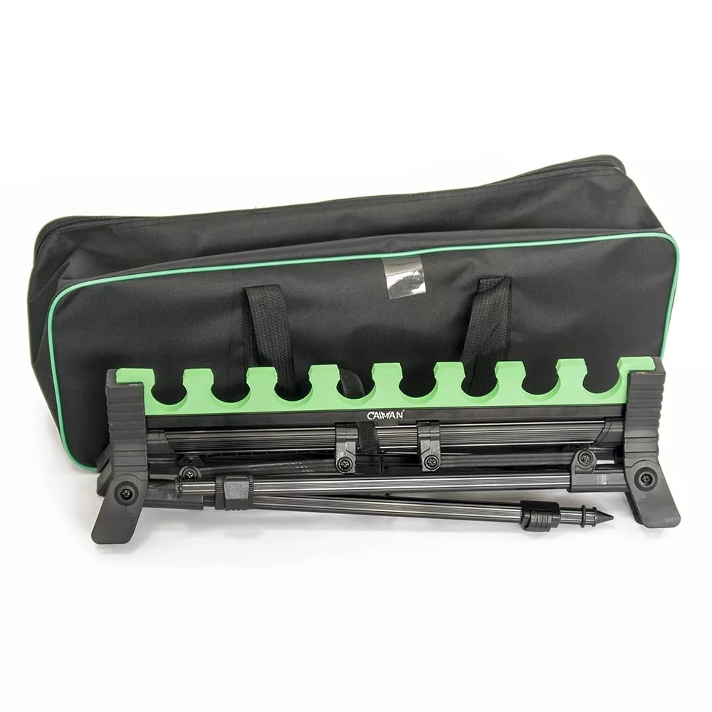 У бренда Caiman есть линейка складных подставок. Она объединяет варианты под разное количество удилищ, однако все они имеют сходную конструкцию. Для производства используется стальной сплав, что дает надежность и долговечность.