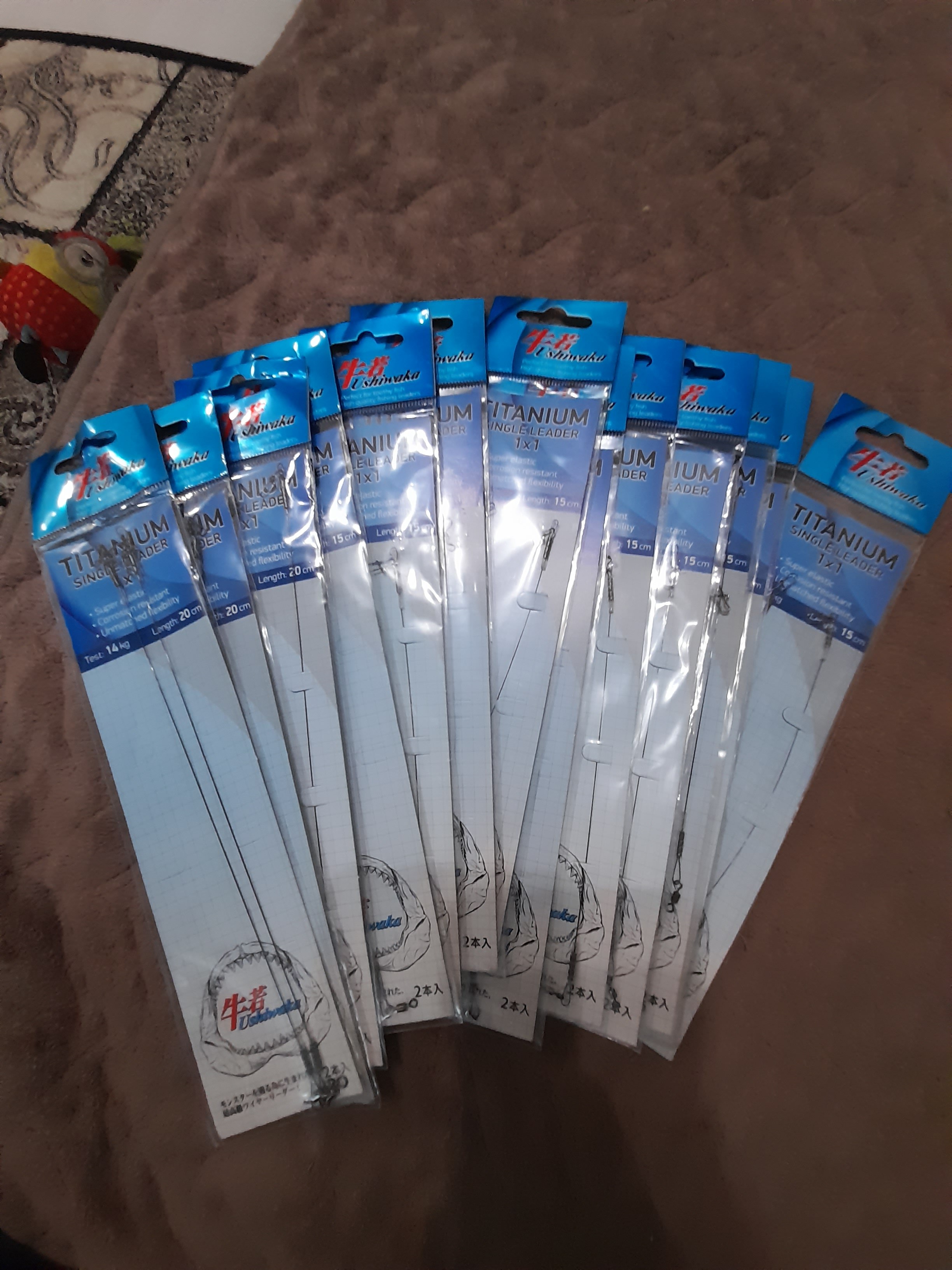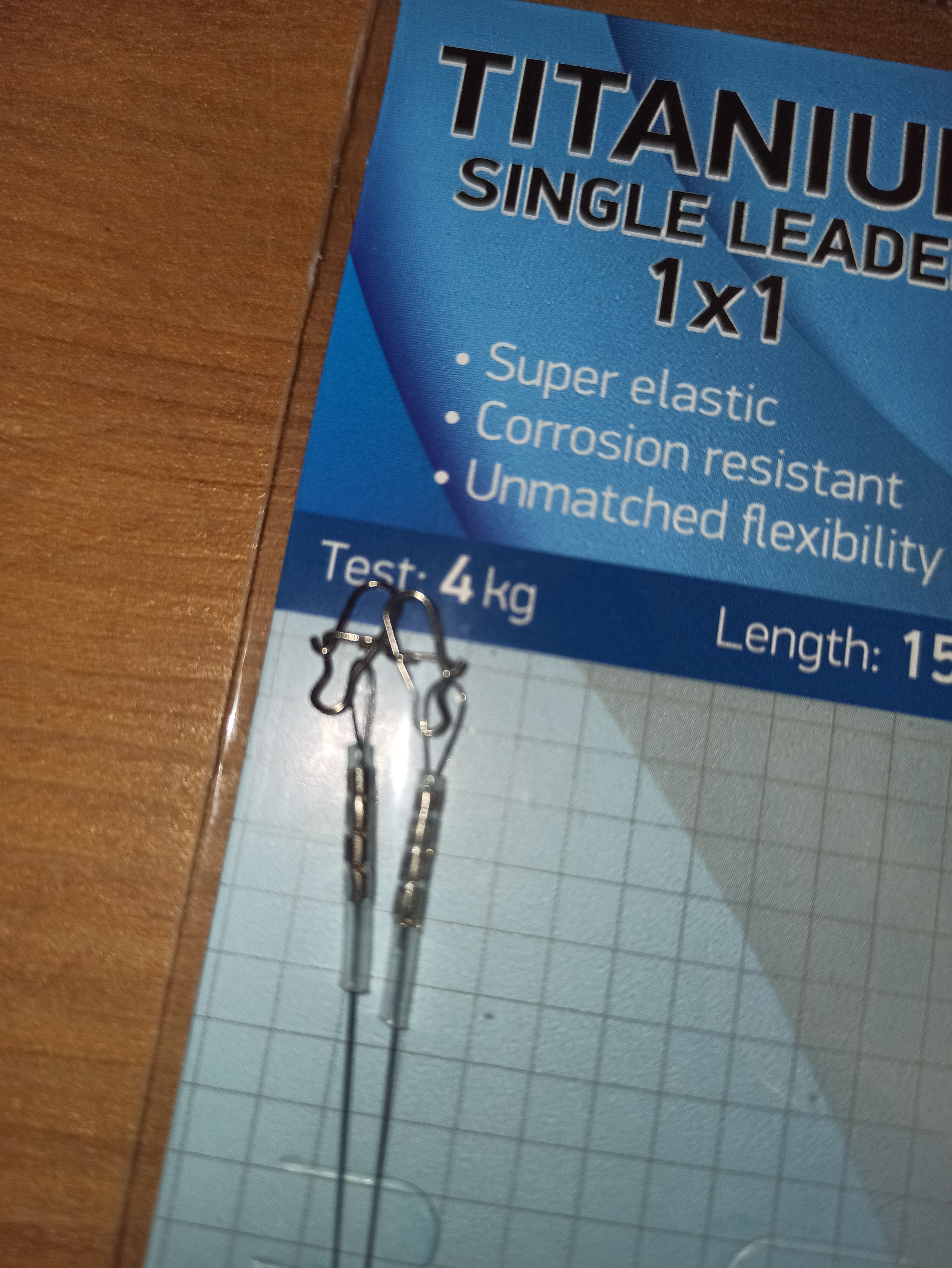 Поводок из одножильного титанового материала. Обладает превосходной эластичностью и гибкостью. Не деформируется после изгиба. Поводки очень легкие и в то же время чрезвычайно прочные. Комплектуются качественными и компактными вертлюгами с застежками. Титановые поводки не подвержены коррозии.