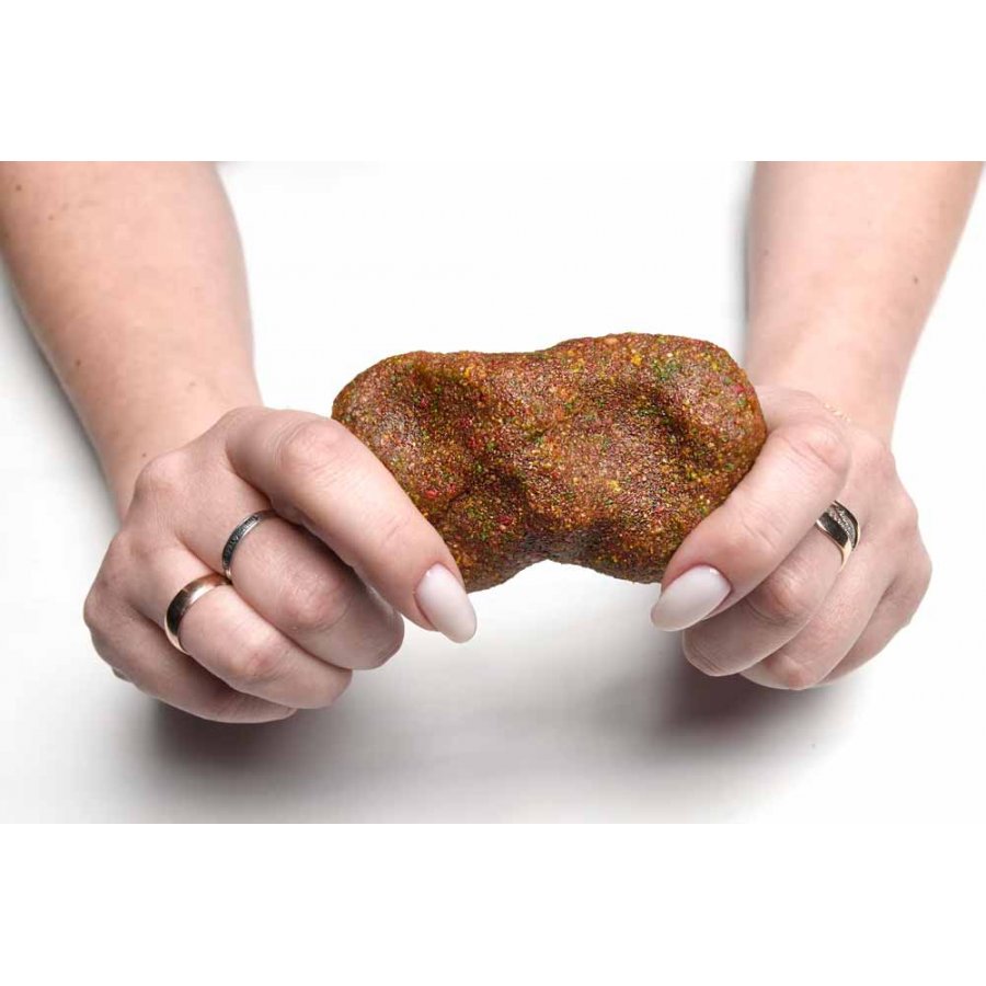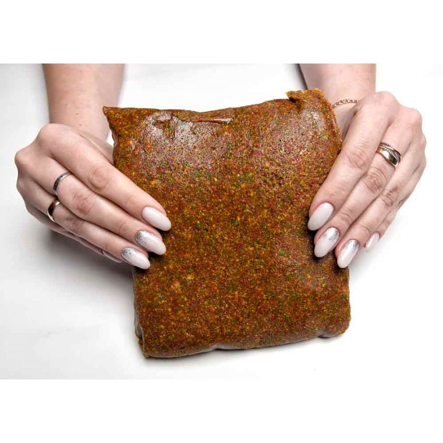 - Все компоненты, которые входят в состав пластилина, имеют мелкий и средний помол - именно такой помол придает нужную вязкость и пластичность структуре, создает повышенную муть при растворении в воде. Сочетание мелких и средних частиц, дают хороший результат для привлечения рыбы в точку ловли.