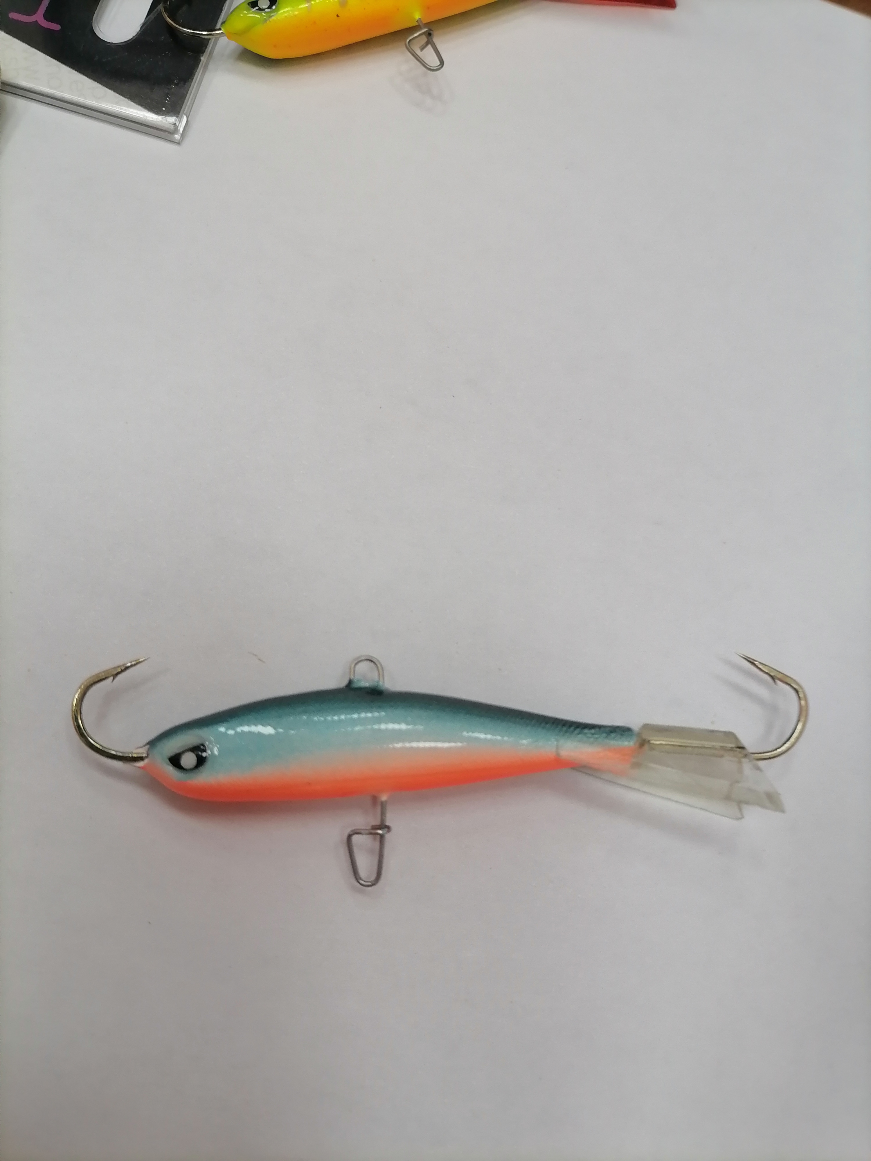 Хвостовое оперение балансира может быть красным или прозрачным, изготовлено из морозостойкого пластика и приклеено к телу приманки суперпрочным клеем.
