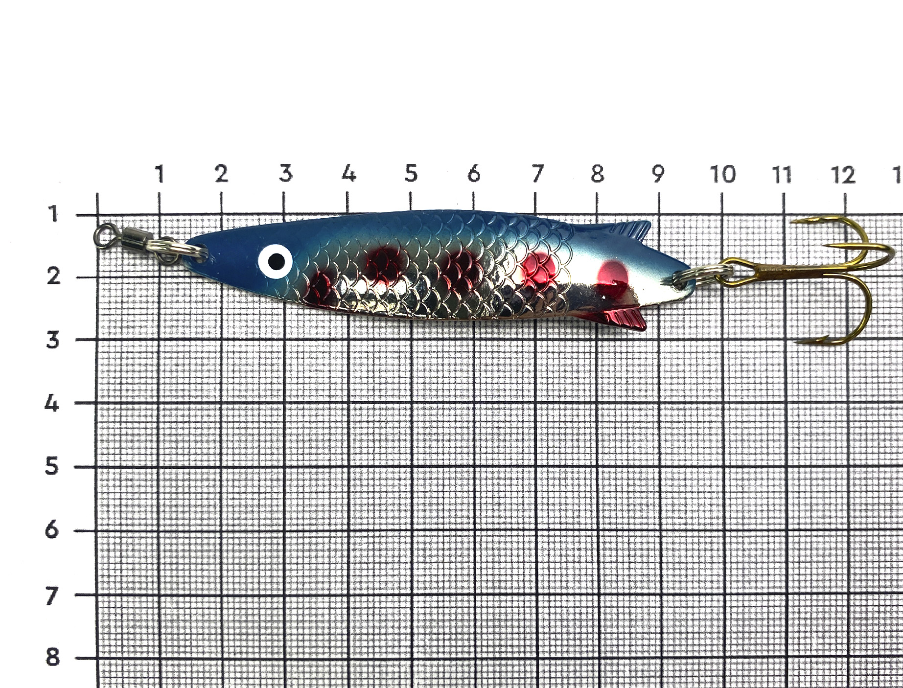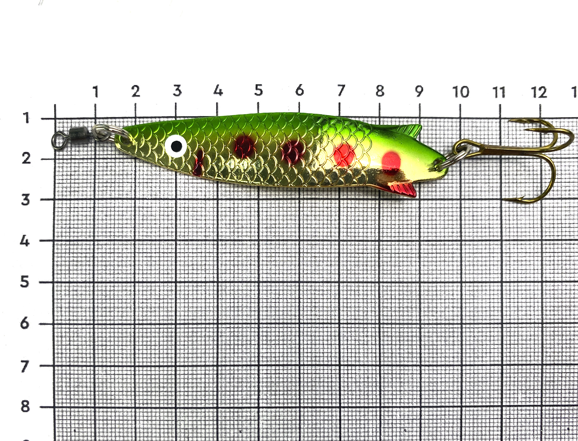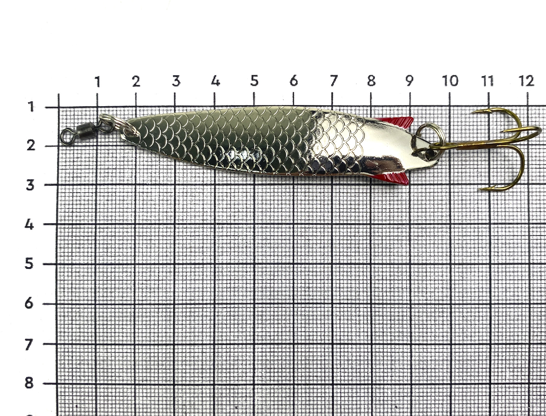 Вытянутый корпус колебалки имеет два небольших плавничка внизу и покрыт рифлением, которое воспроизводит очертания чешуи. Блесна без труда достигает отдаленных перспективных точек при забросах. Соблазнительная игра не сбивается даже на течении. Потому поймать с такой приманкой можно как зубастую щуку и вездесущего окуня, так и судака, форель, жереха, ленка, хариуса, кумжу, тайменя и т.д.