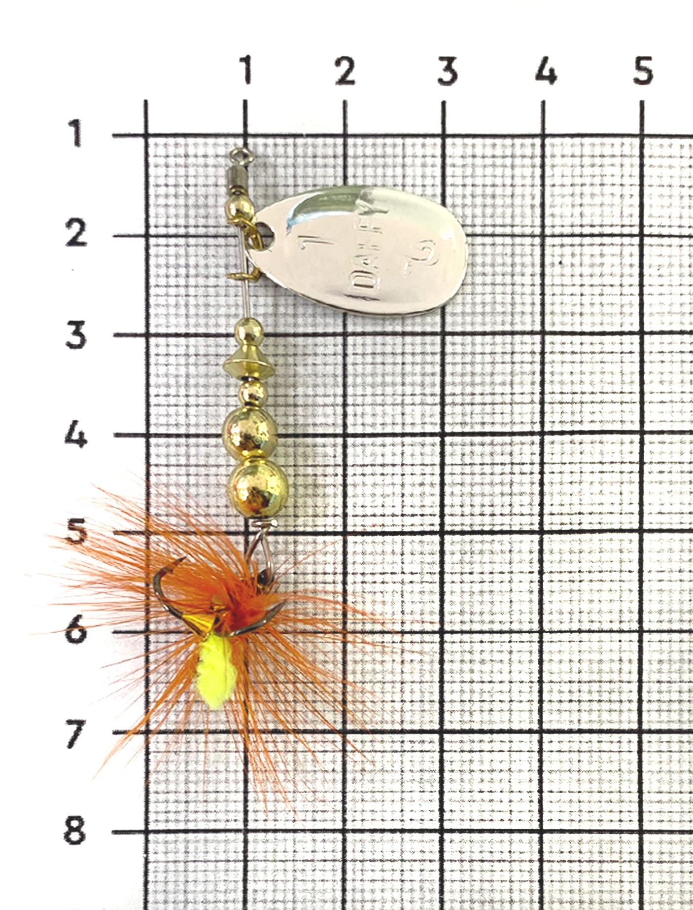 Daffy - вращающаяся блесна с широким лепестком, который при вращении отклоняется от оси на угол 50-55 градусов, что позволяет использовать эту приманку как на течении, так и в стоячей воде.