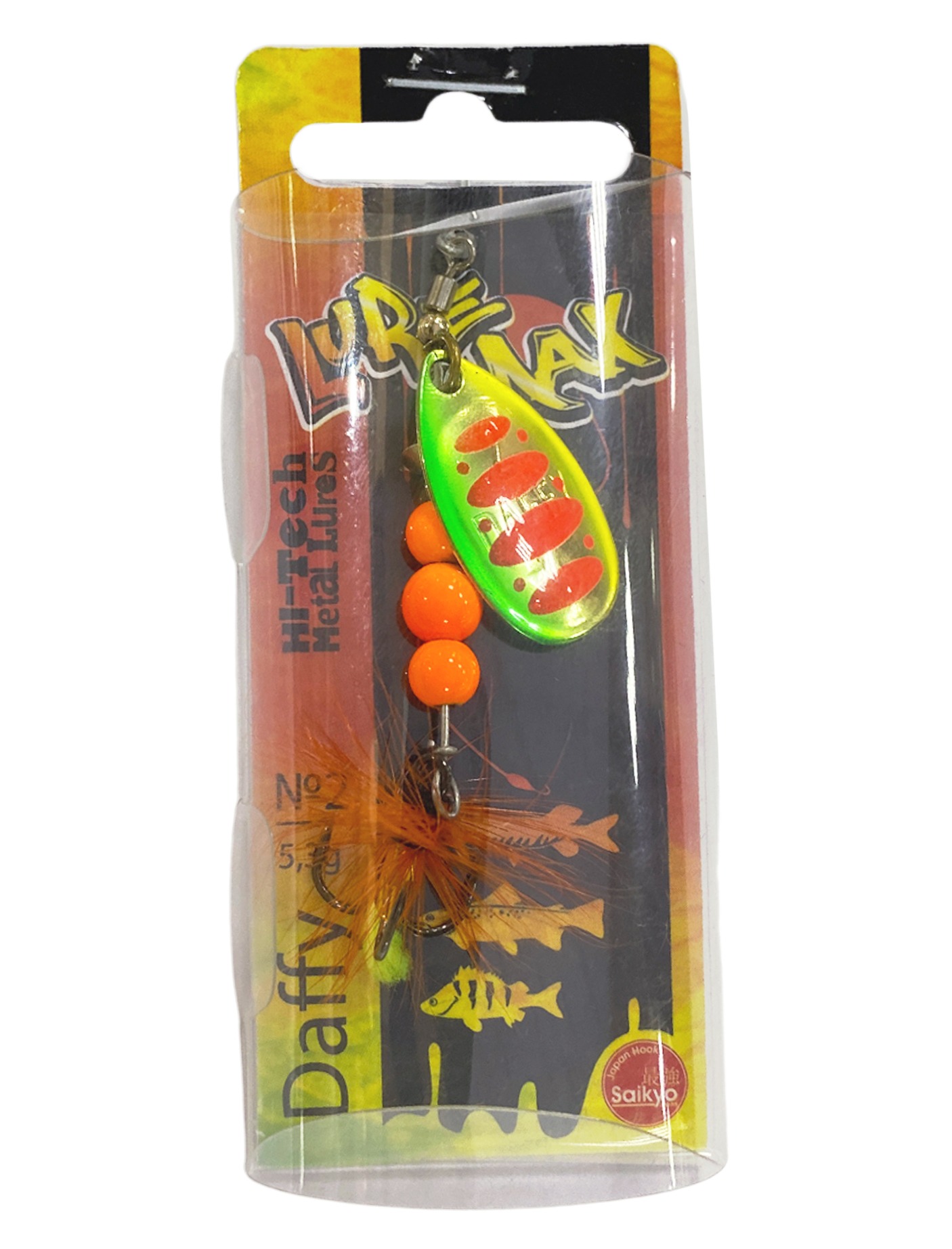 Daffy - вращающаяся блесна с широким лепестком, который при вращении отклоняется от оси на угол 50-55 градусов, что позволяет использовать эту приманку как на течении, так и в стоячей воде.