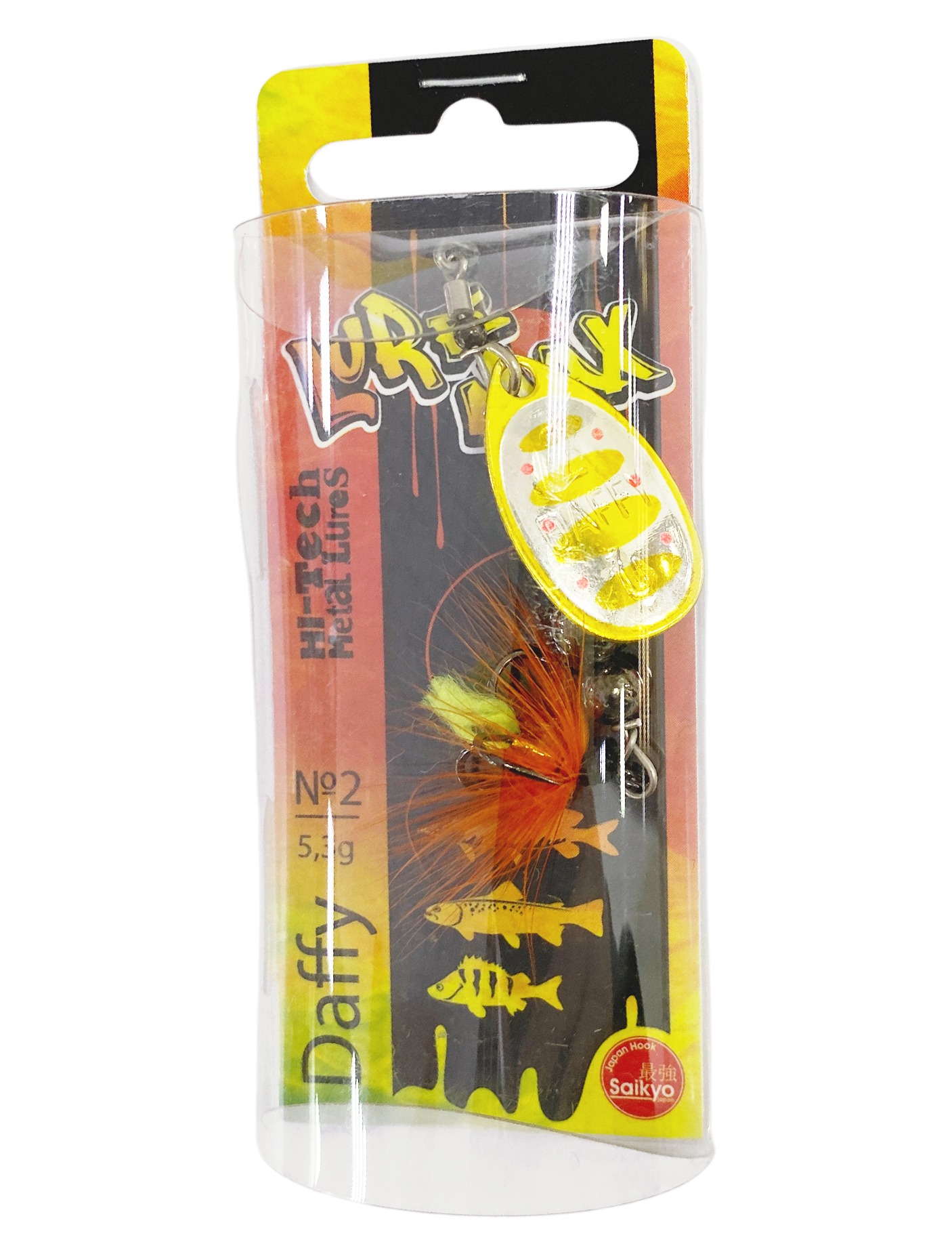 Daffy - вращающаяся блесна с широким лепестком, который при вращении отклоняется от оси на угол 50-55 градусов, что позволяет использовать эту приманку как на течении, так и в стоячей воде.