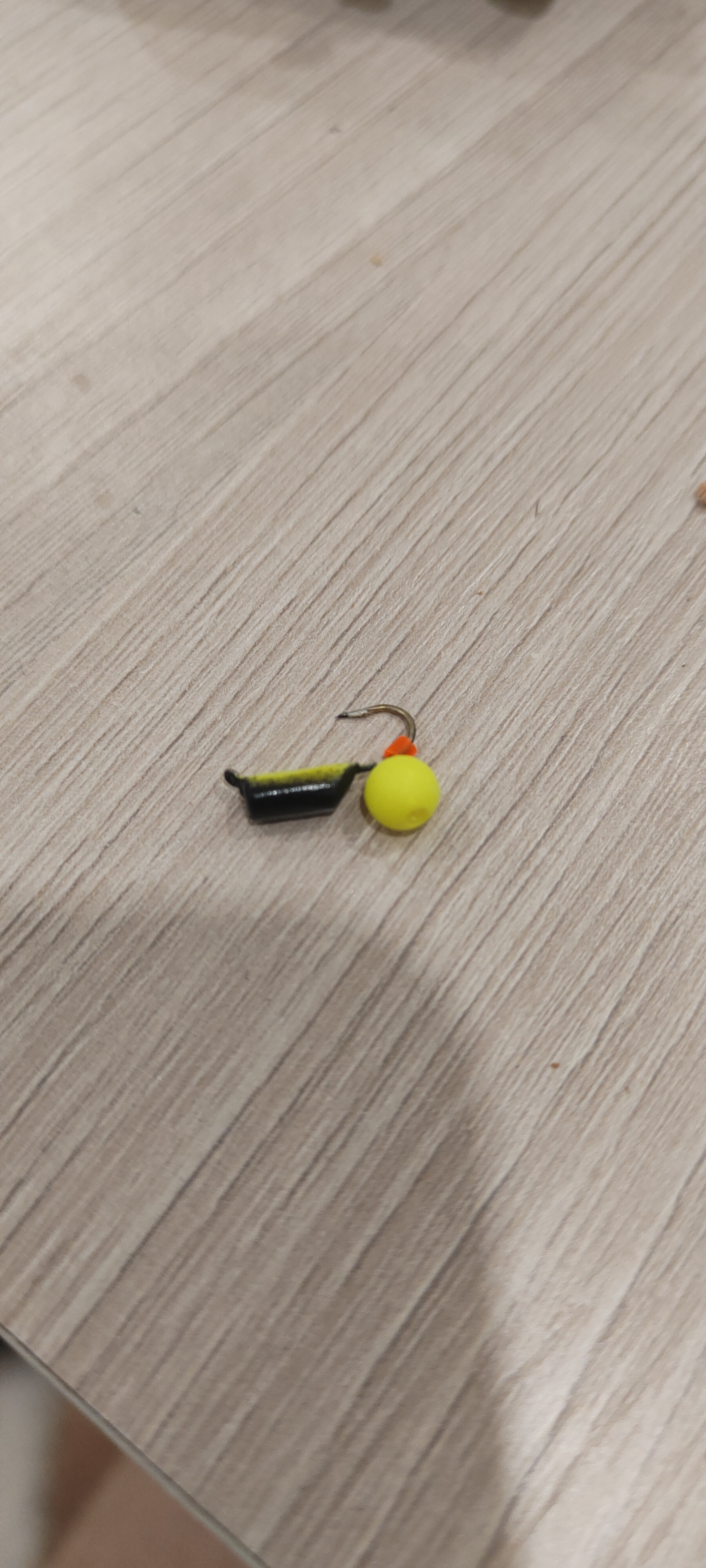 Неоновый подвес усиливает визуальный эффект. Кроме того, рыба чувствует колебания воды боковой линией. Игра приманки напоминает движение мелкого жучка, который поднимается со дна. Такие насекомые входят в основной зимний рацион рыбы, поэтому мормышка способна вызвать интерес у трофея.
