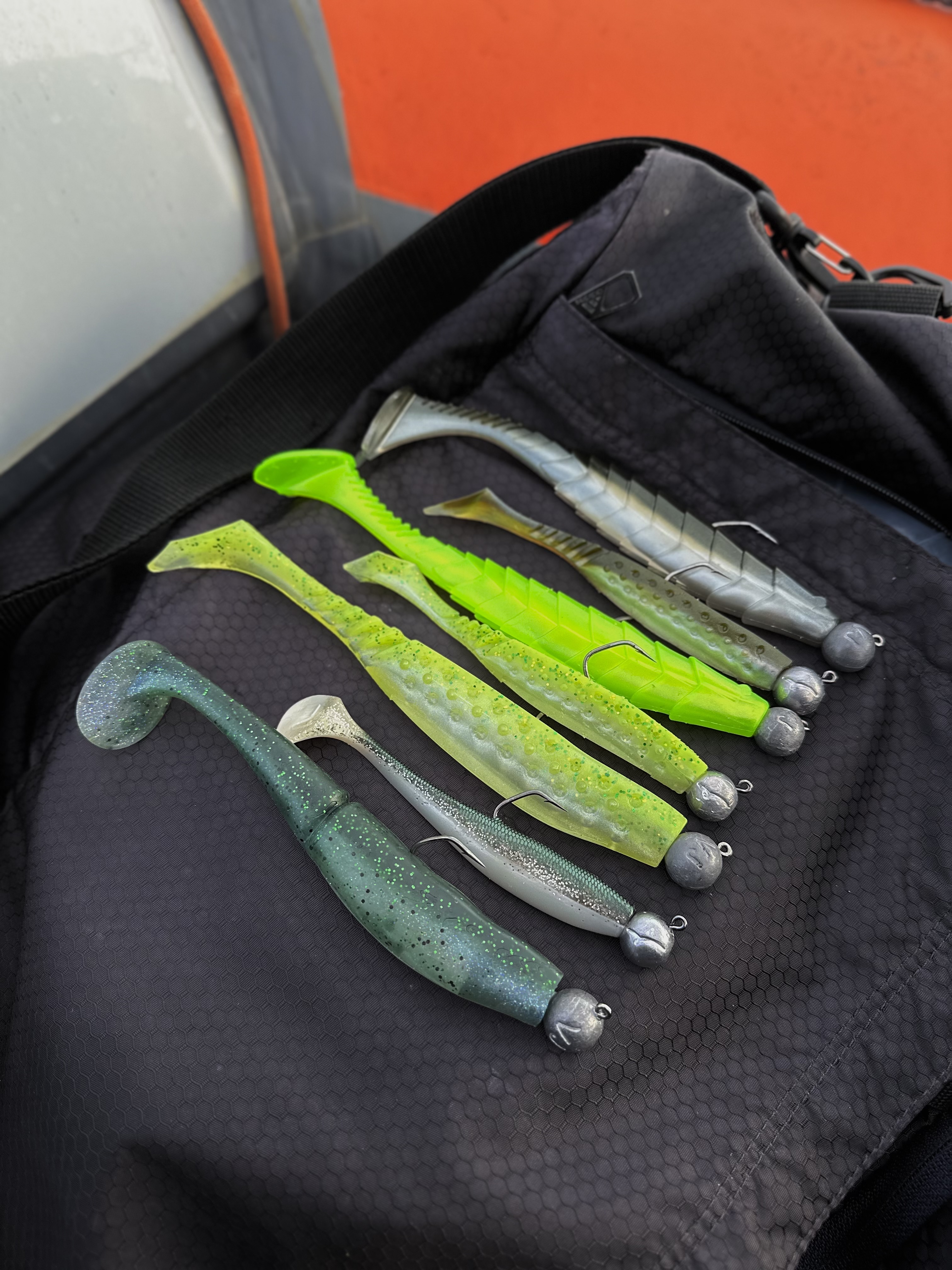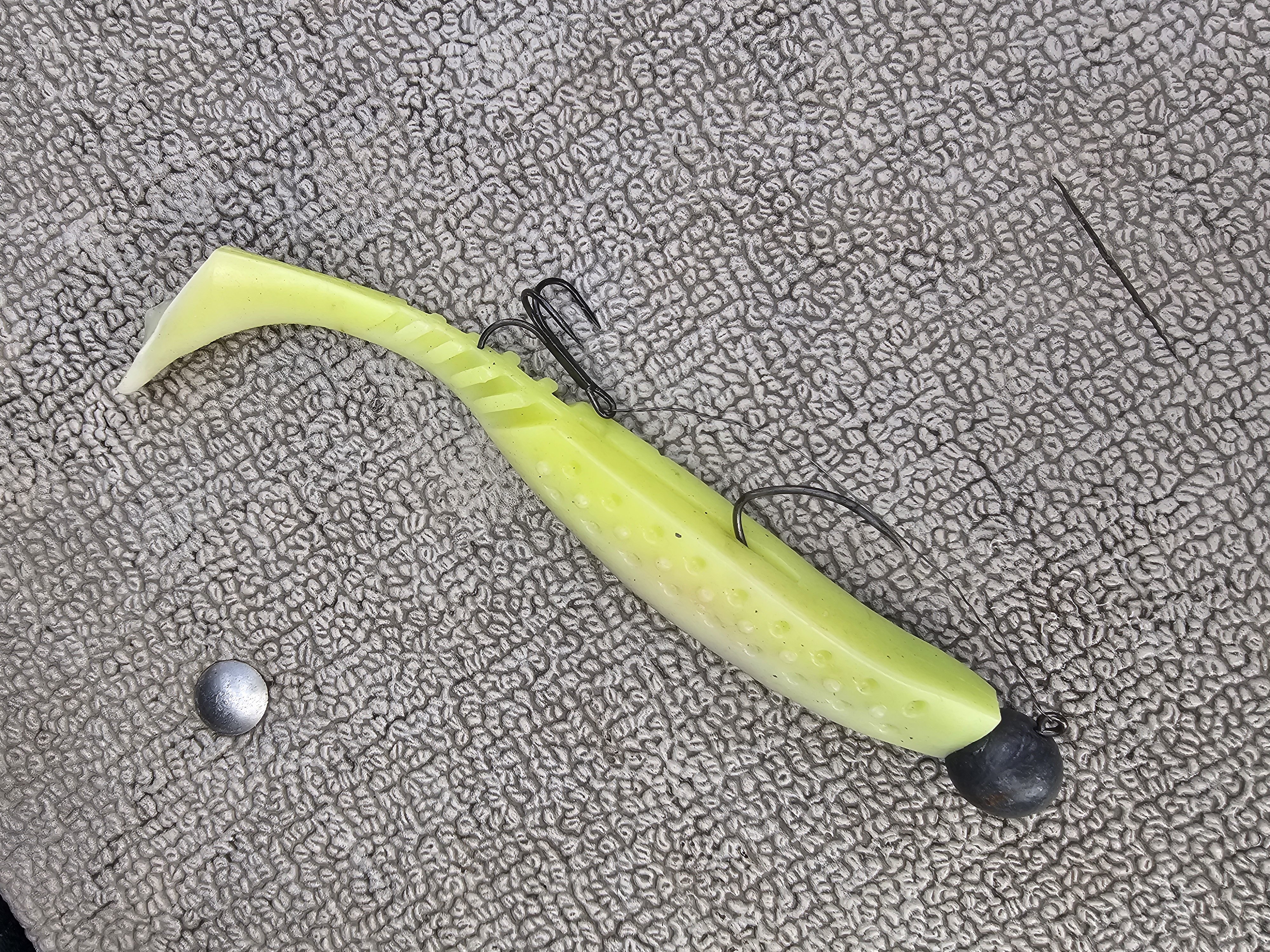 Рекомендуется оснащать Funky Shad длиной 4-5 дюймов джиг-головкой, офсетным крючком или двойником. Модели длиной 6.9 и 9 дюймов лучше использовать с джиг-головкой и крючком соответствующего размера или с тройниками на поводках (Stinger Rigs)