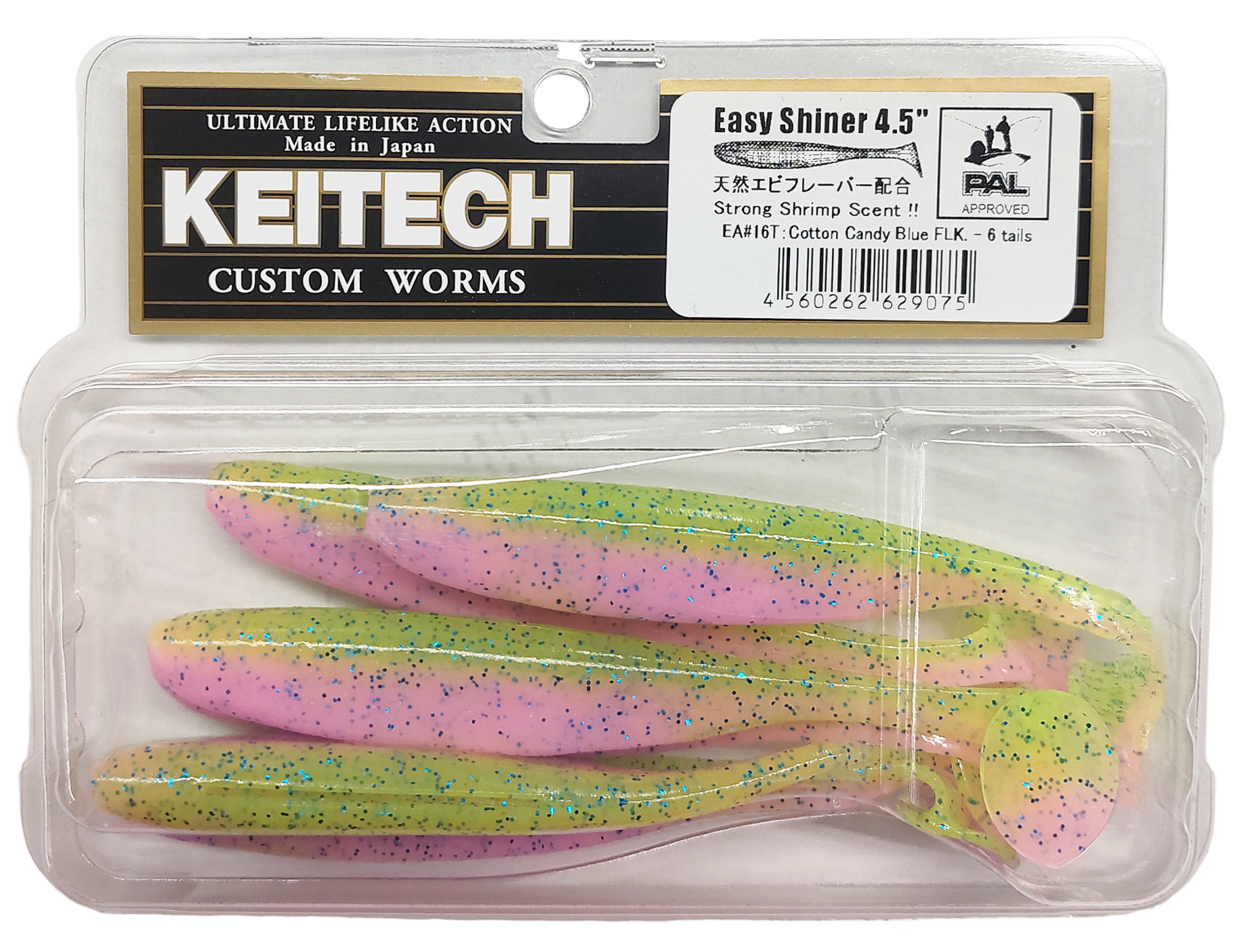 Keitech Easy Shiner – классический виброхвост, который придется по нраву рыболовам, предпочитающим традиционные формы приманок, но вместе с тем – желающим попробовать в работе современную съедобную резину. Тело приманки сильно сплющено с боков, а тонкий хвост заканчивается достаточно массивной лопастью. Это придает этому виброхвосту резко очерченную средне амплитудную высокочастотную игру.
