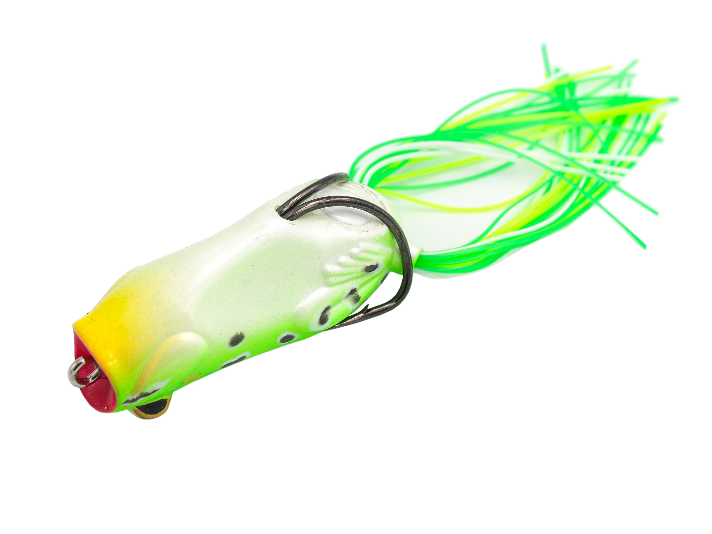 Savage Gear 3D Pop Frog – оригинальный поппер PopperPopper - поверхностный воблер без лопастей, с чашеподобным углублением на носике. Во время рывковой проводки издает хлопающие звуки, привлекающие хищника.Подробнее имитирующий плывущую по поверхности воды лягушку. Тело приманки выполнено из мягкого ПВХ PVCPVC - бесцветная, прозрачная пластмасса, термопластичный полимер винилхлорида. Отличается химической стойкостью к щелочам, минеральным маслам, многим кислотам и растворителям. Не горит на воздухе, обладает малой морозостойкостью. Подробнее , в него вставлен двойной крючок, жала которого направлены верх и находятся практически на одном уровне с поверхностью воблера. Такая конструкция позволяет проводить приманку на участках водоема, которые сильно закоряжены или заполнены водной растительностью. При хватке рыба легко продавливает мягкий материал и засекается на крючок. Во время рывковой проводки углубление в передней части воблера увлекает некоторое количество воздуха под поверхность воды, вырываясь обратно, он создает характерный булькающий звук, привлекающий рыбу. Пучки гибких силиконовых нитей имитируют движущиеся задние лапы земноводного. Savage Gear 3D Pop Frog хорошо зарекомендовал себя при ловле щуки и басса.