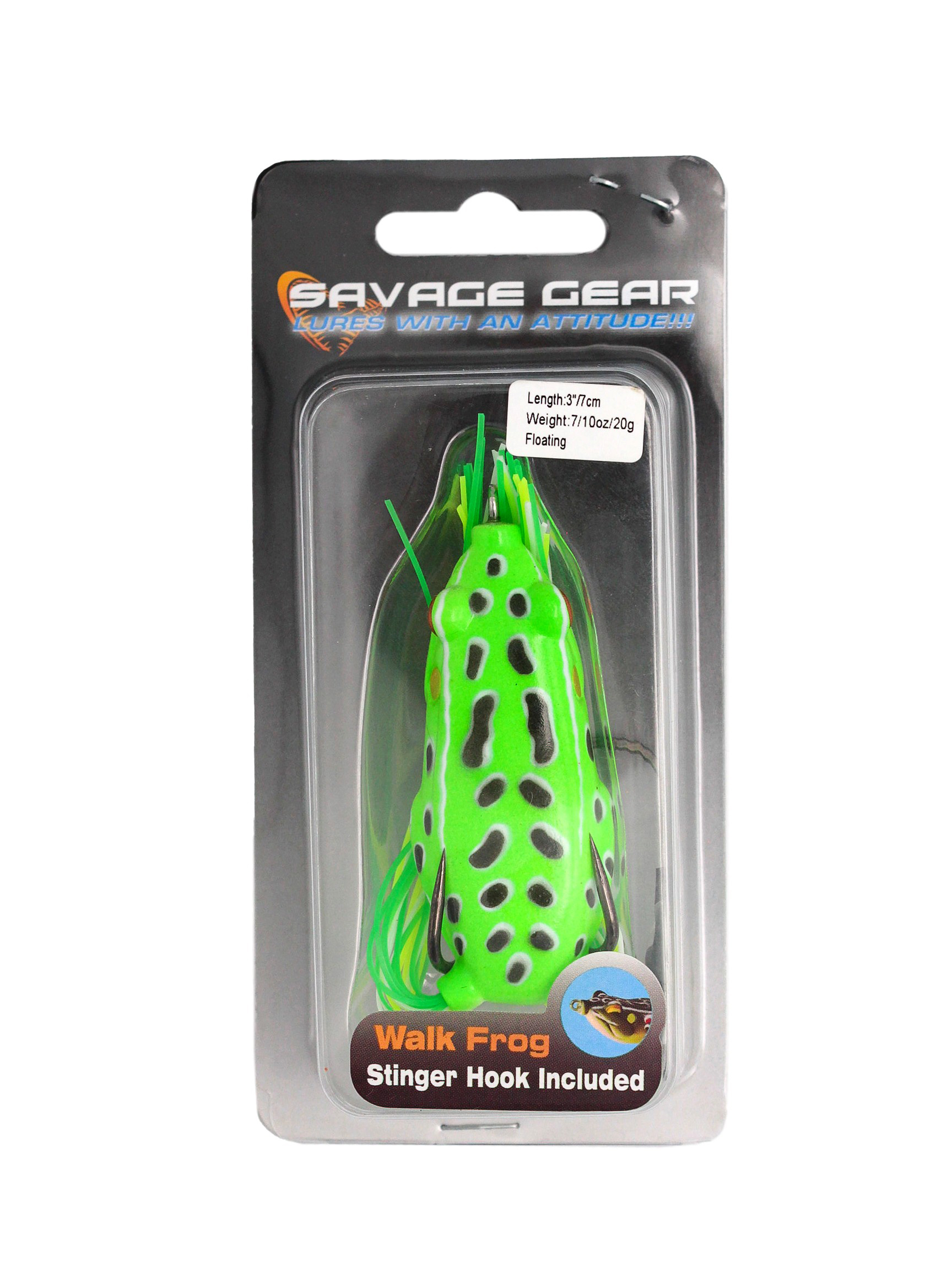 Savage Gear 3D Pop Frog – оригинальный поппер PopperPopper - поверхностный воблер без лопастей, с чашеподобным углублением на носике. Во время рывковой проводки издает хлопающие звуки, привлекающие хищника.Подробнее имитирующий плывущую по поверхности воды лягушку. Тело приманки выполнено из мягкого ПВХ PVCPVC - бесцветная, прозрачная пластмасса, термопластичный полимер винилхлорида. Отличается химической стойкостью к щелочам, минеральным маслам, многим кислотам и растворителям. Не горит на воздухе, обладает малой морозостойкостью. Подробнее , в него вставлен двойной крючок, жала которого направлены верх и находятся практически на одном уровне с поверхностью воблера. Такая конструкция позволяет проводить приманку на участках водоема, которые сильно закоряжены или заполнены водной растительностью. При хватке рыба легко продавливает мягкий материал и засекается на крючок. Во время рывковой проводки углубление в передней части воблера увлекает некоторое количество воздуха под поверхность воды, вырываясь обратно, он создает характерный булькающий звук, привлекающий рыбу. Пучки гибких силиконовых нитей имитируют движущиеся задние лапы земноводного. Savage Gear 3D Pop Frog хорошо зарекомендовал себя при ловле щуки и басса.