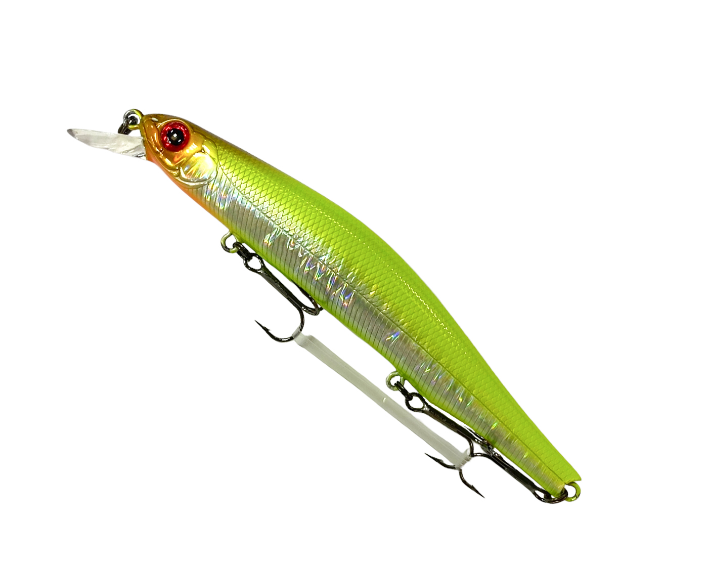 Все воблеры серии отличает удлиненное, прогонистое, округлое в сечении тело, воблер относится к классу минноу MinnowMinnow - похож на маленькую плотву. Данная форма является самой распространенной, она имеет стройную и длинную форму, и в основном предназначается для ловли поверхностной ловли, хотя бывают и глубоководные модели.Подробнее. Главная цель такого конструктива – придать приманкам обтекаемость, улучшить скольжение в воде. Огружен в головной части плотно зафиксированным шариком. Воблеры ZipBaits Orbit 110SP-SR - мелкозаглубляющаяся модификация, лопатка небольшая, практически не мешает скольжению в воде, крепежное колечко установлено строго в носовой части.